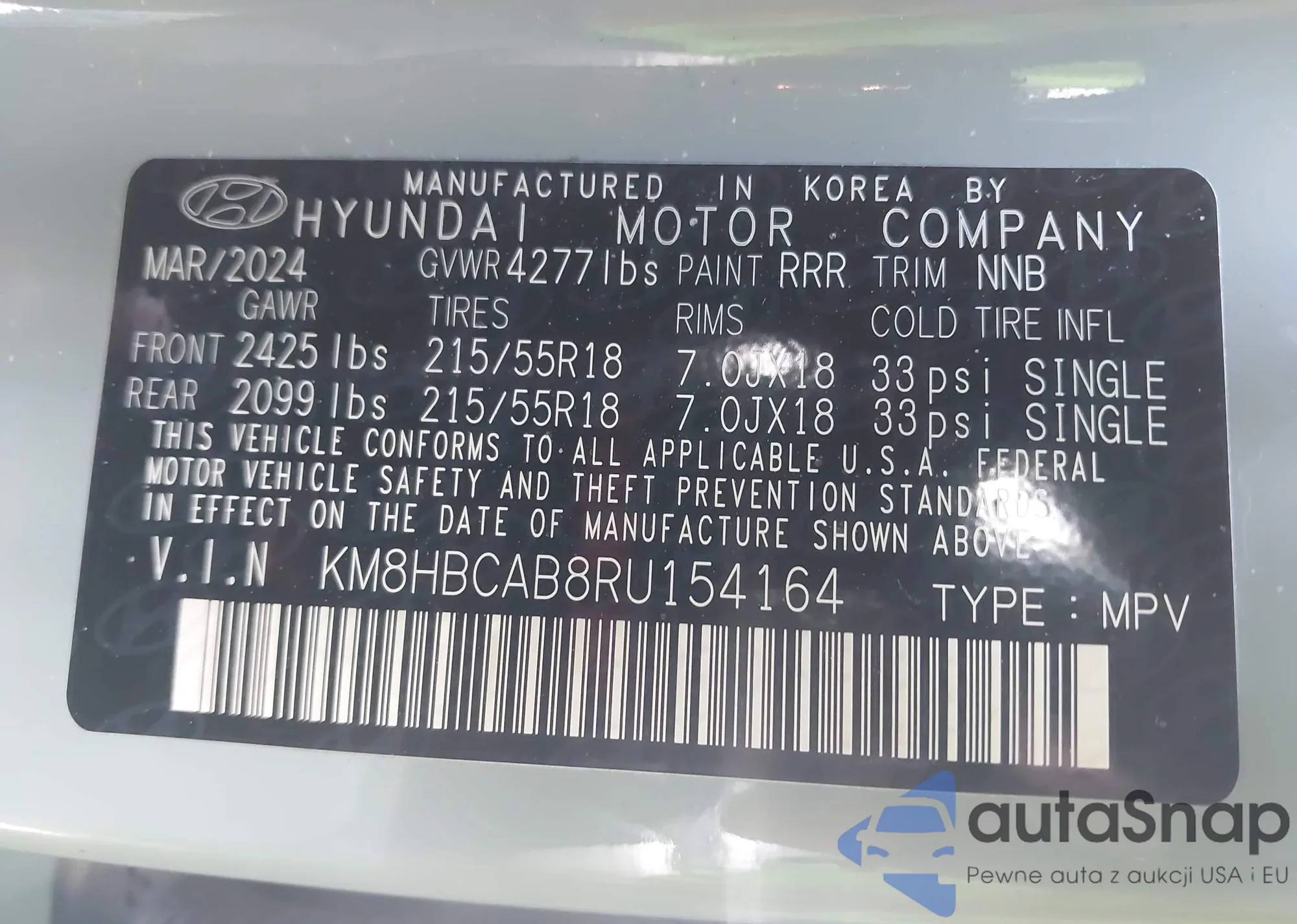 • VIN KM8HBCAB8RU154164