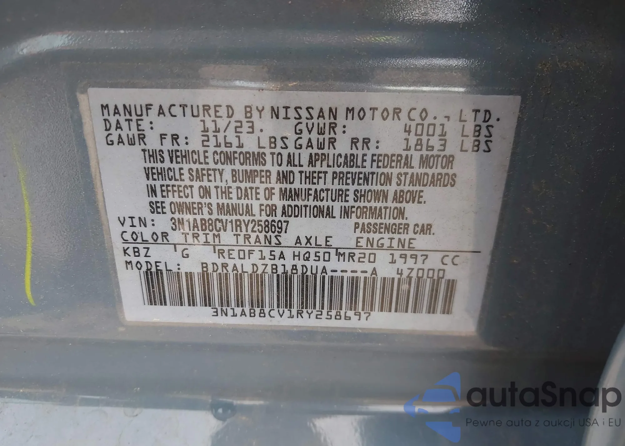 • VIN 1N6ED1EJ4NN655111