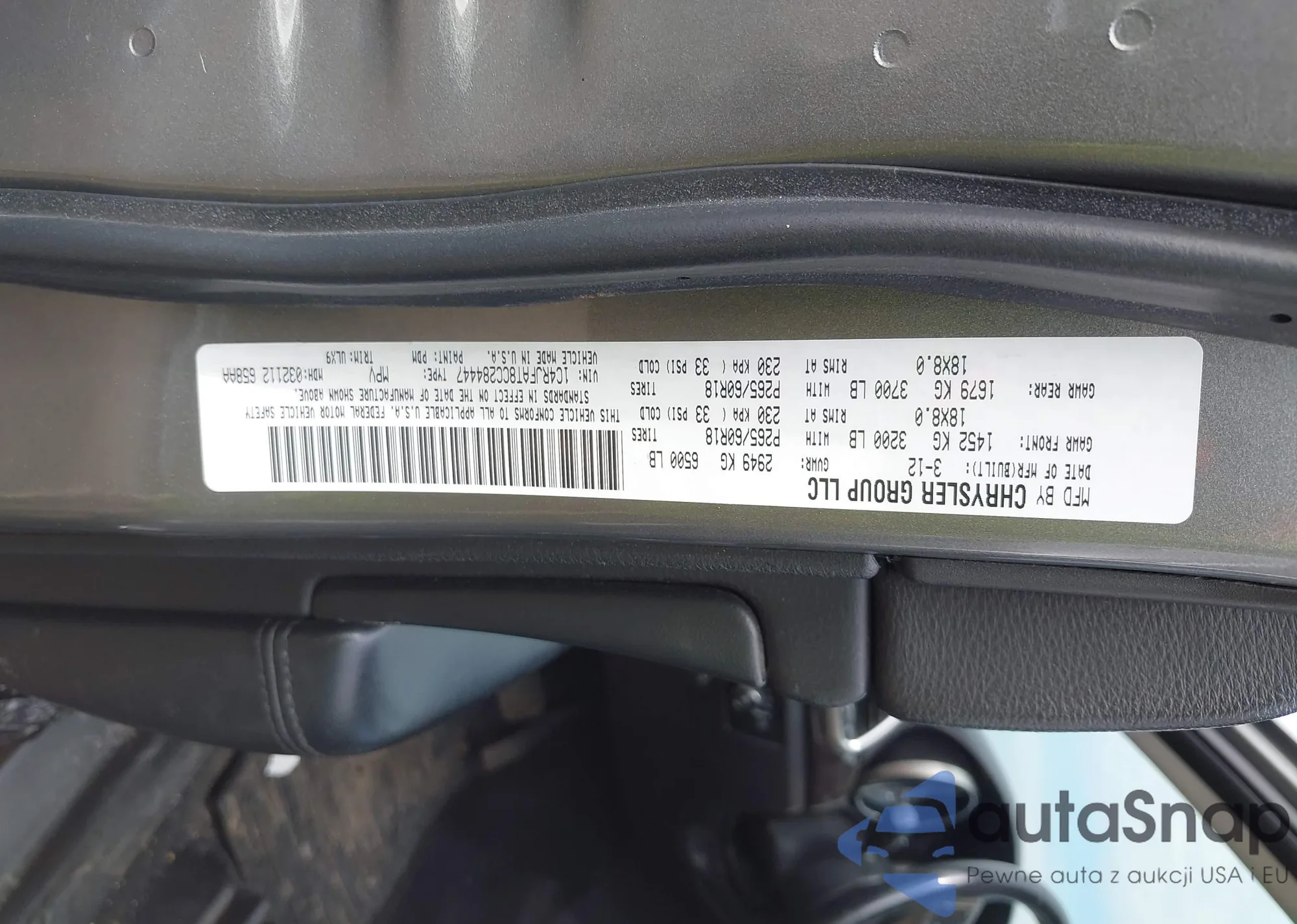 • VIN 1C4RJFAT8CC284447