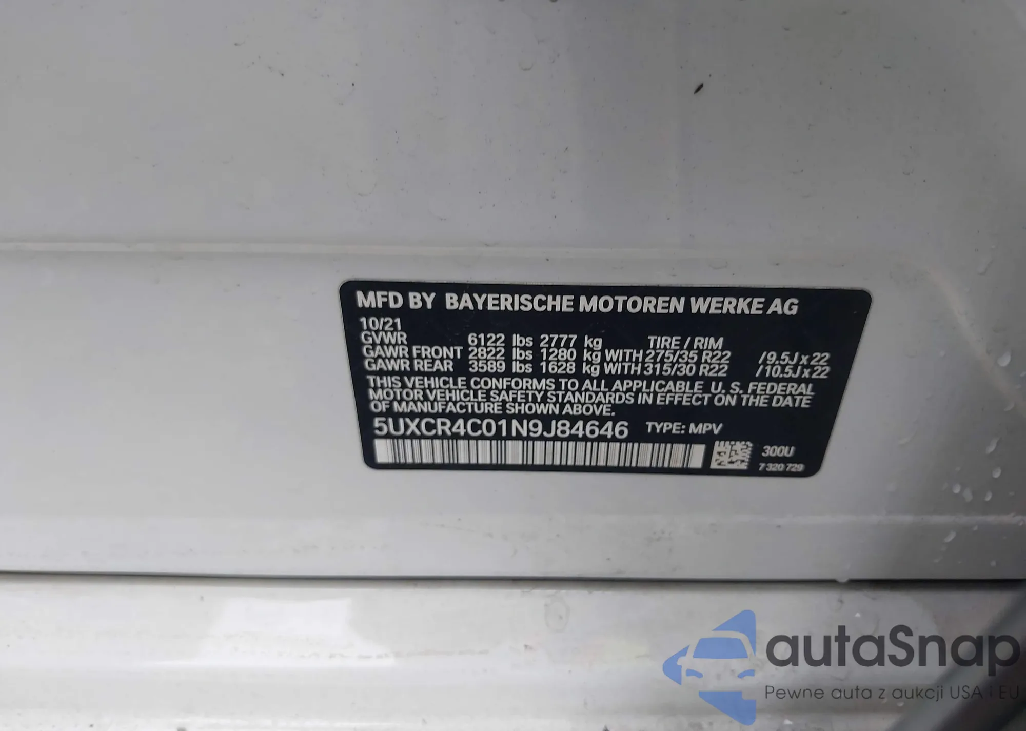 LOT: 42238368 VIN: 5UXCR4C01N9J84646