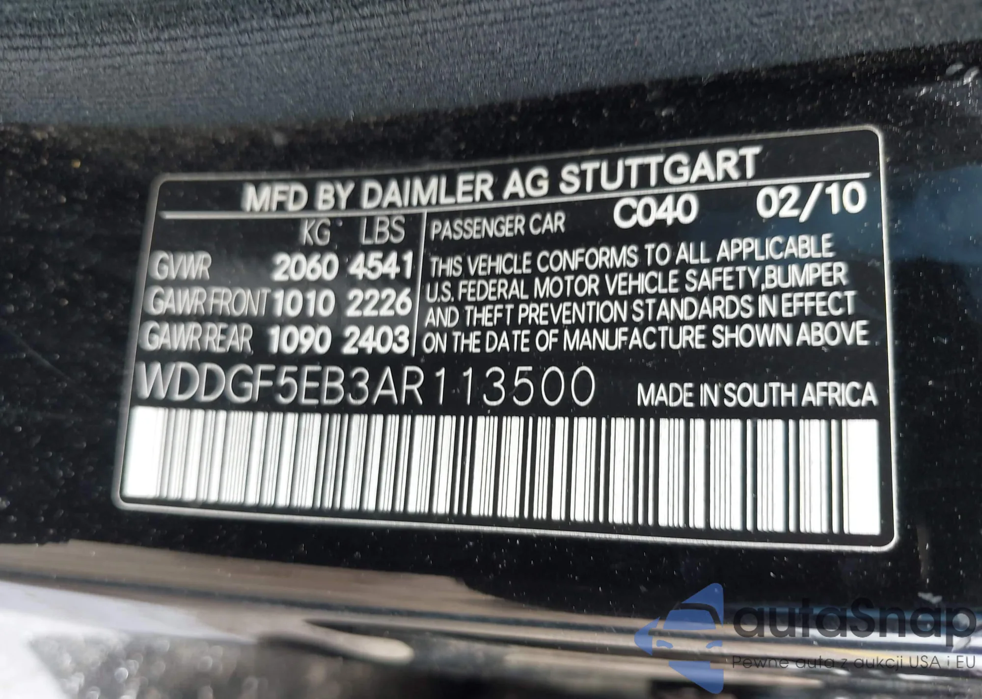 LOT: 42337850 VIN: WDDGF5EB3AR113500
