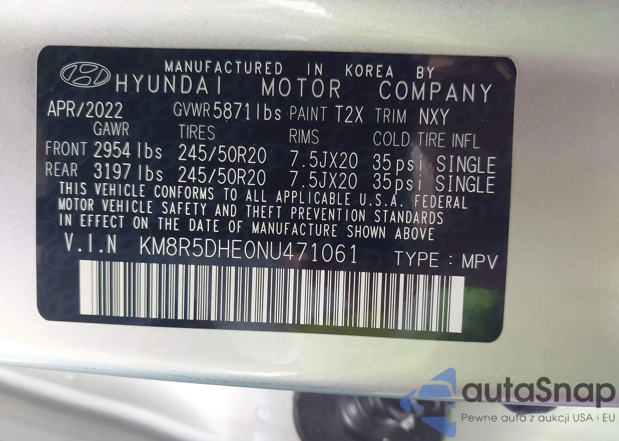 • VIN KM8R5DHE0NU471061