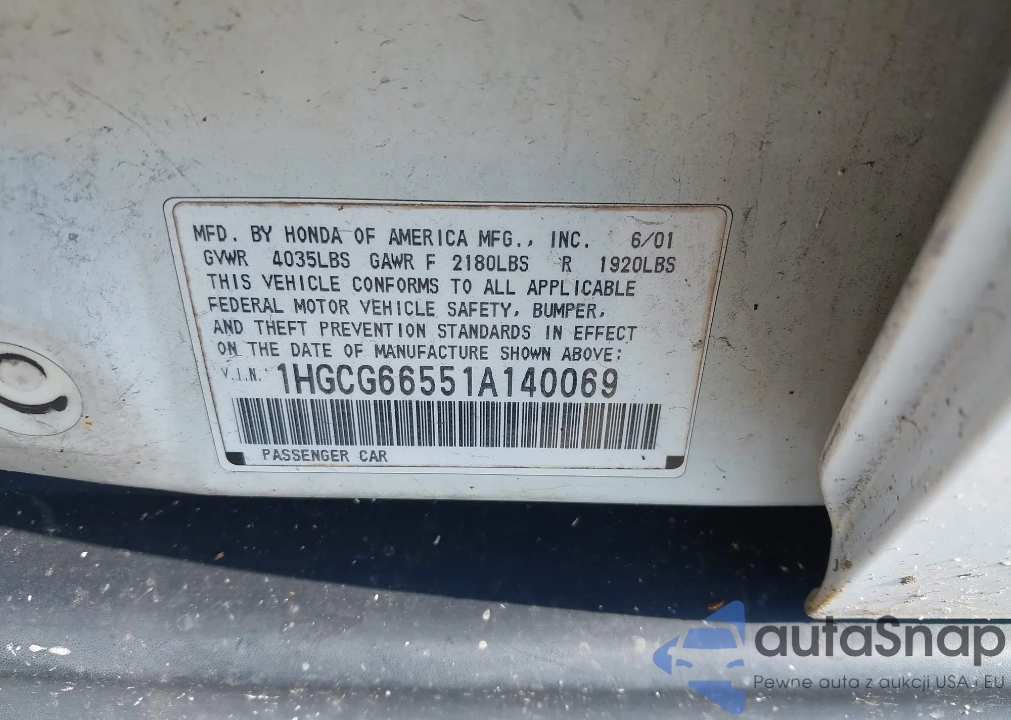 LOT: 42573767 VIN: 1HGCG66551A140069