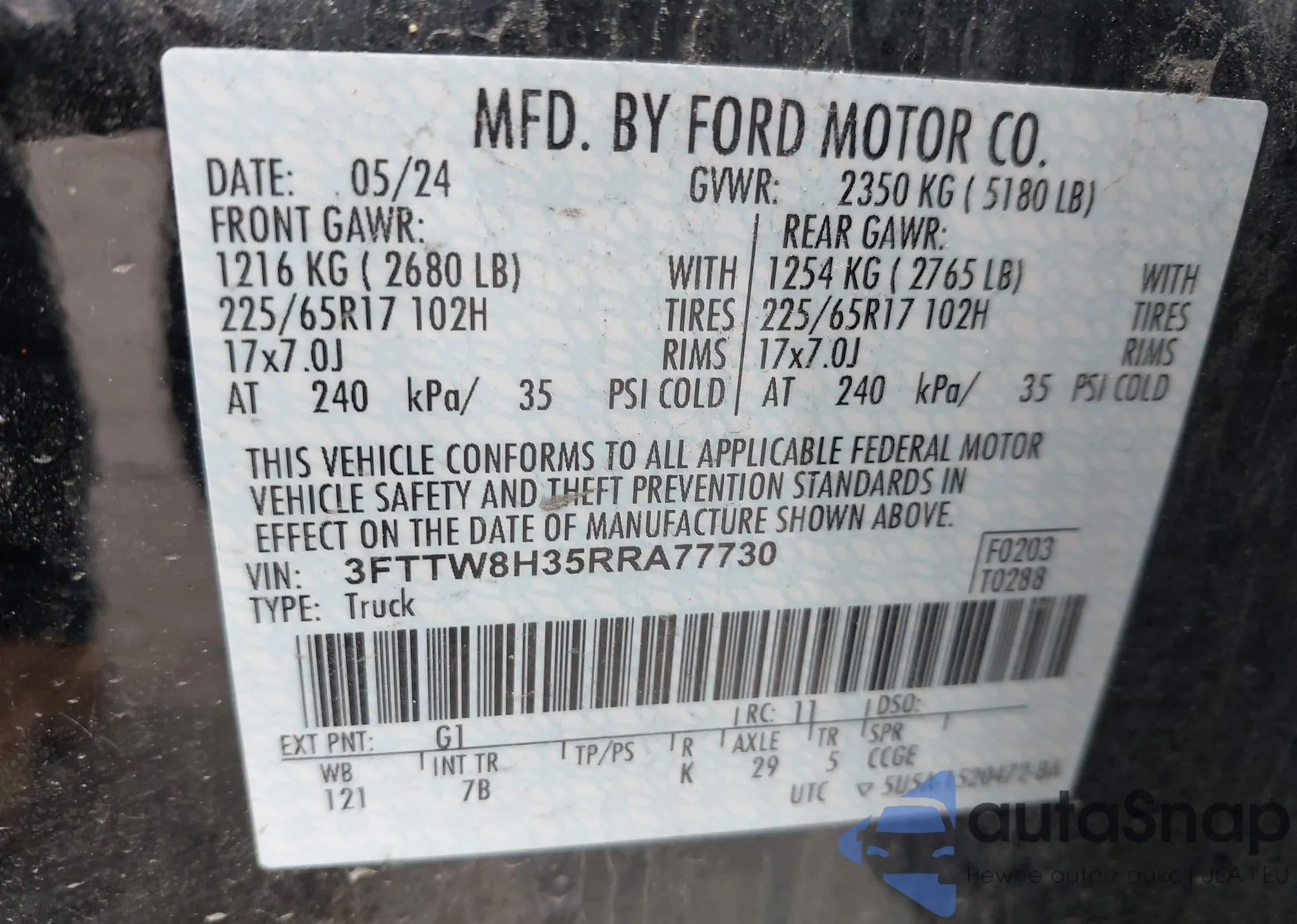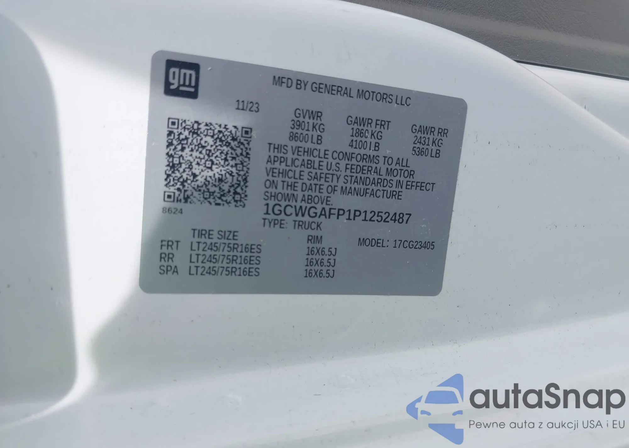 LOT: 42255590 VIN: 1GCWGAFP1P1252487