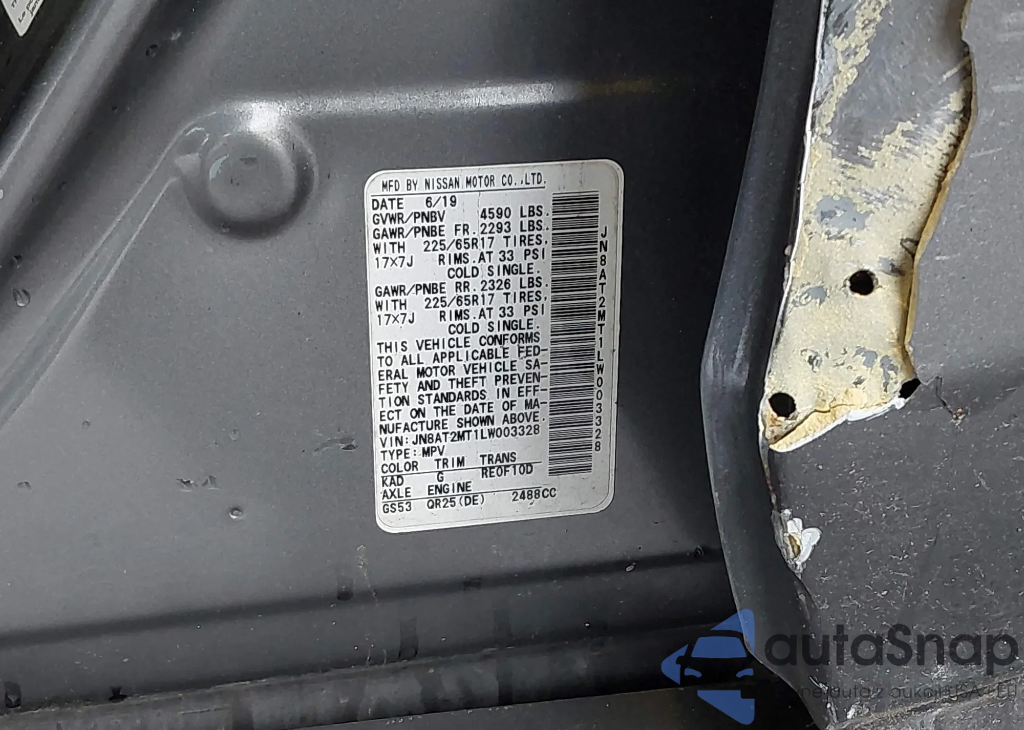 LOT: 42325166 VIN: JN8AT2MT1LW003328