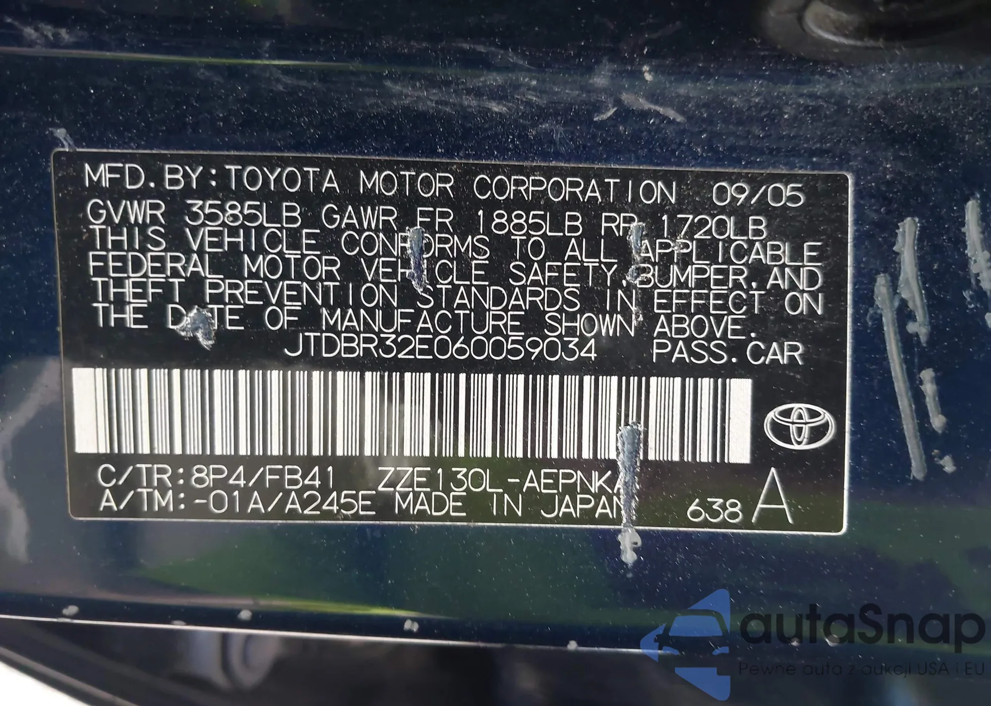 LOT: 42699596 VIN: JTDBR32E060059034