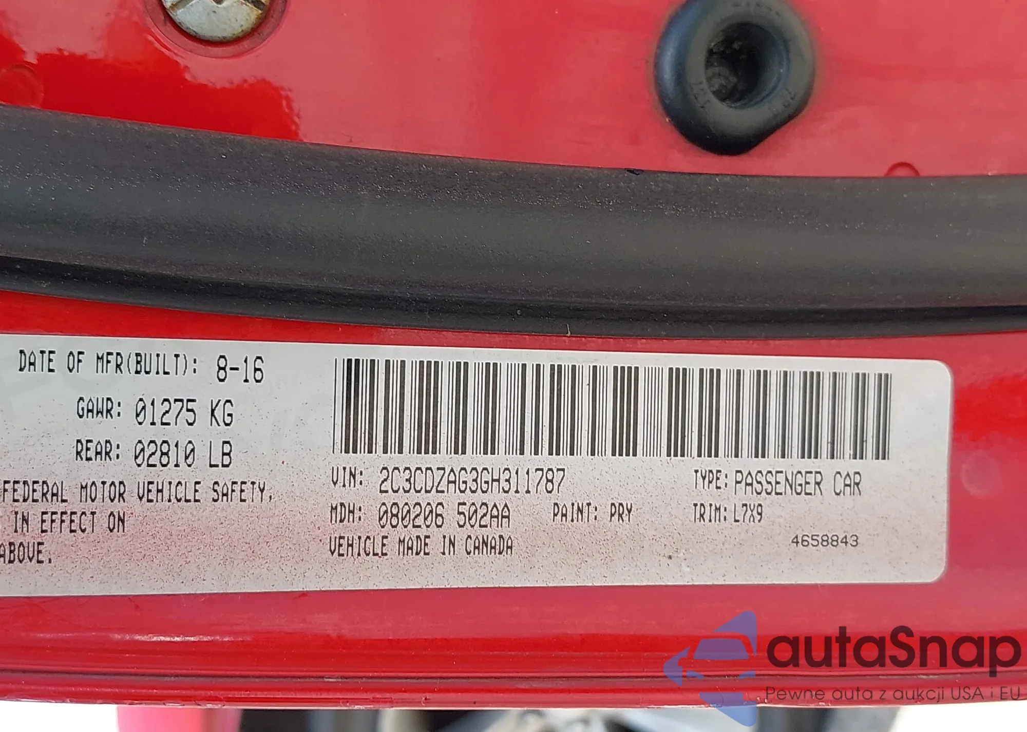 • VIN 2C3CDZAG3GH311787