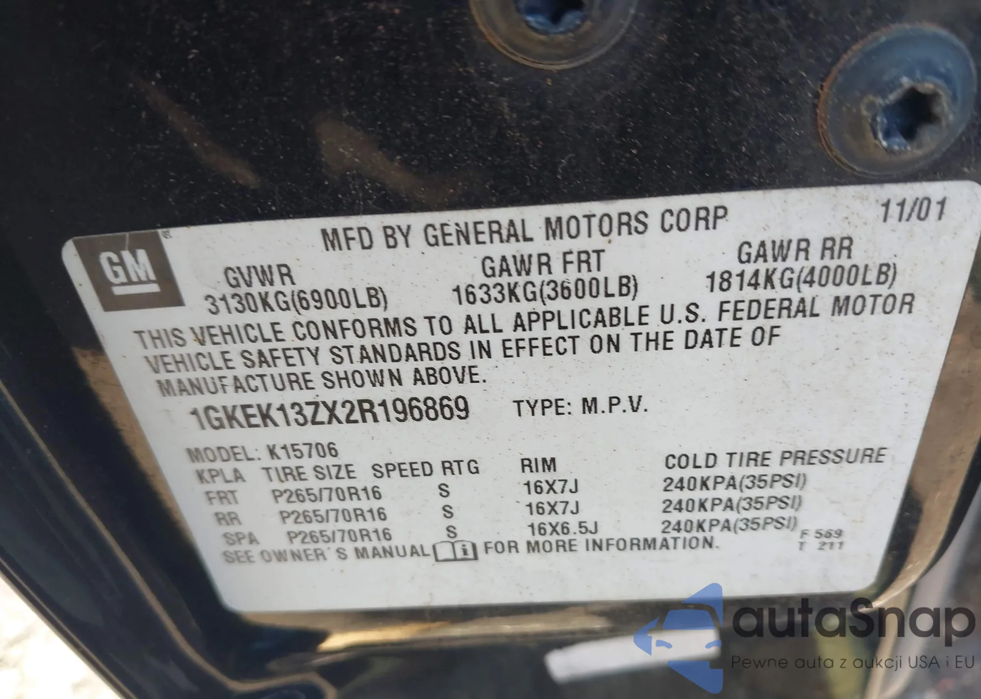 • VIN 1GKEK13ZX2R196869