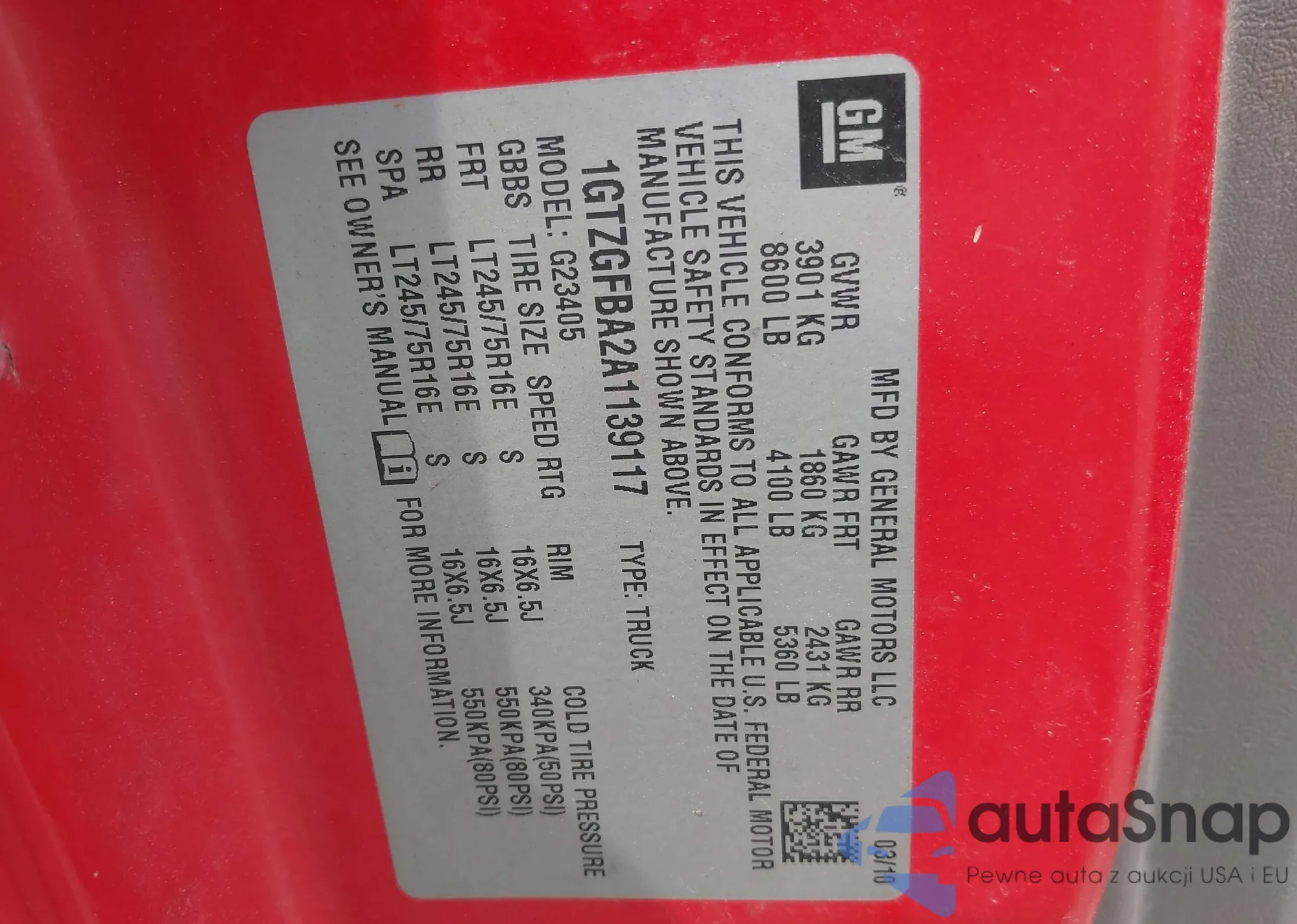 LOT: 42759793 VIN: 1GTZGFBA2A1139117