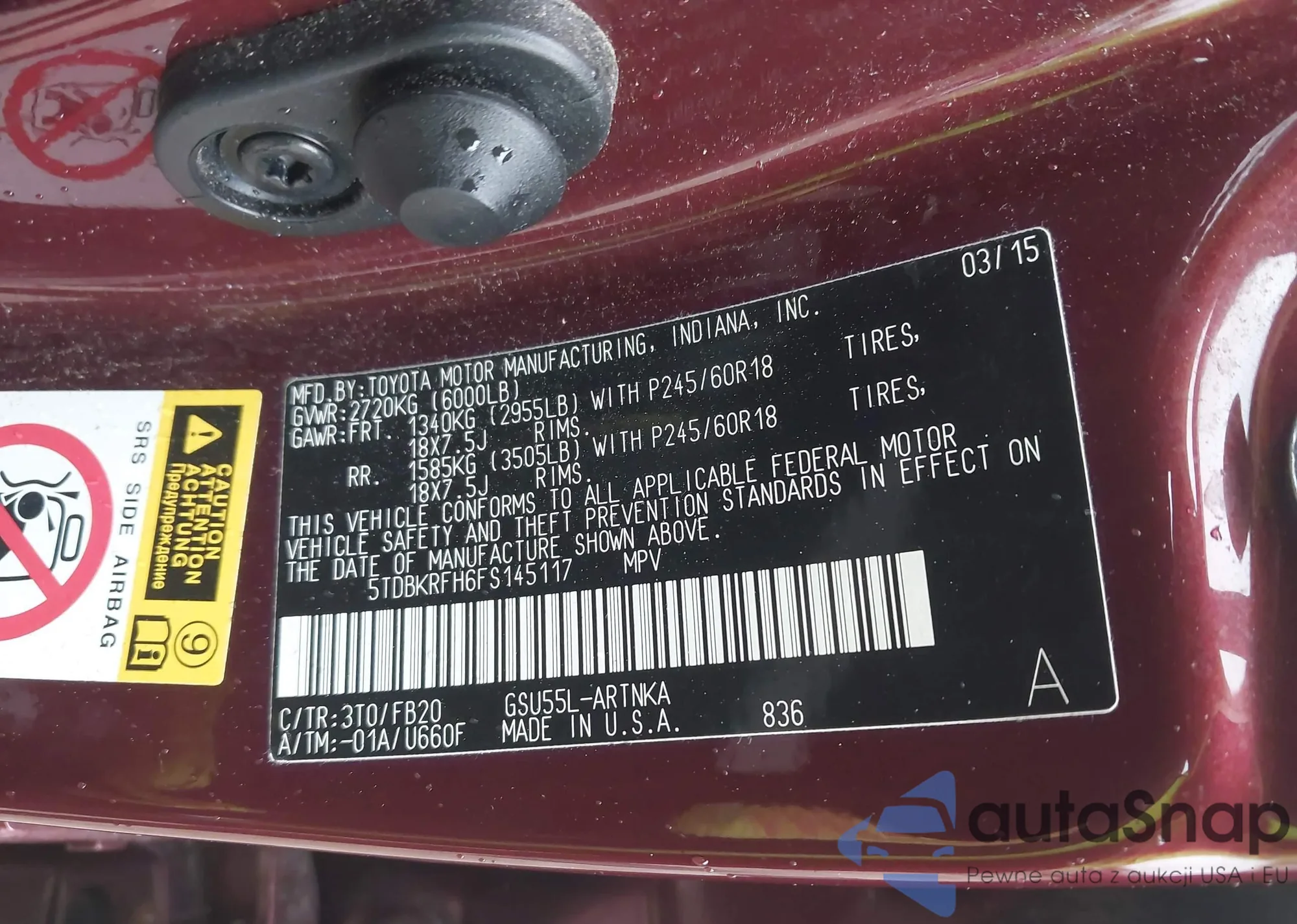 LOT: 42257633 VIN: 5TDBKRFH6FS145117