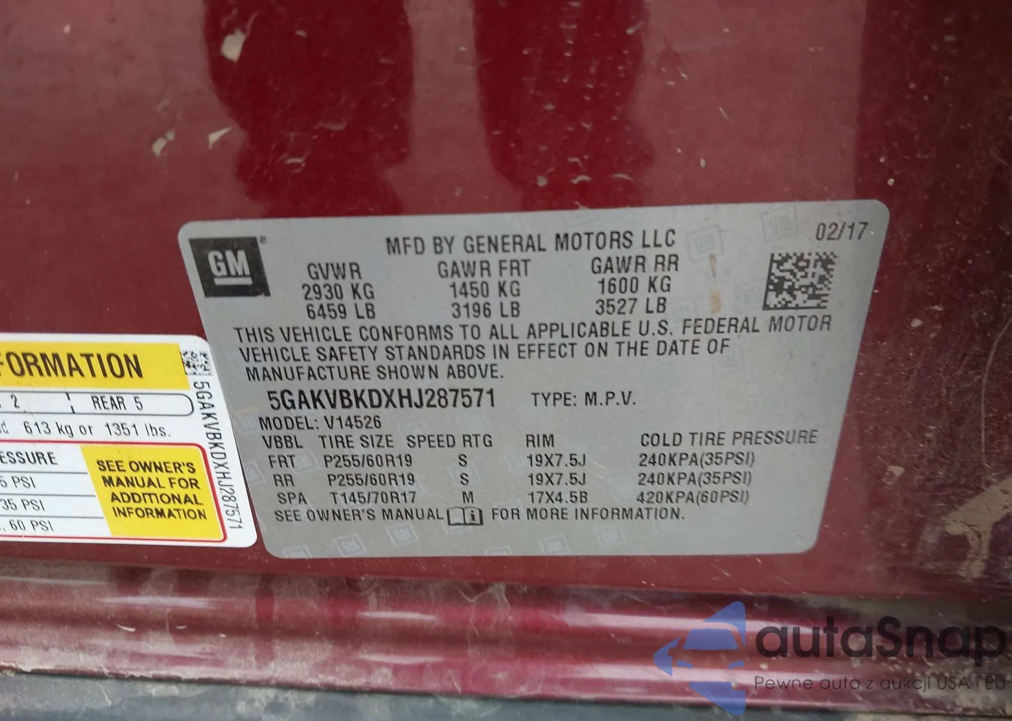LOT: 42426619 VIN: 5GAKVBKDXHJ287571