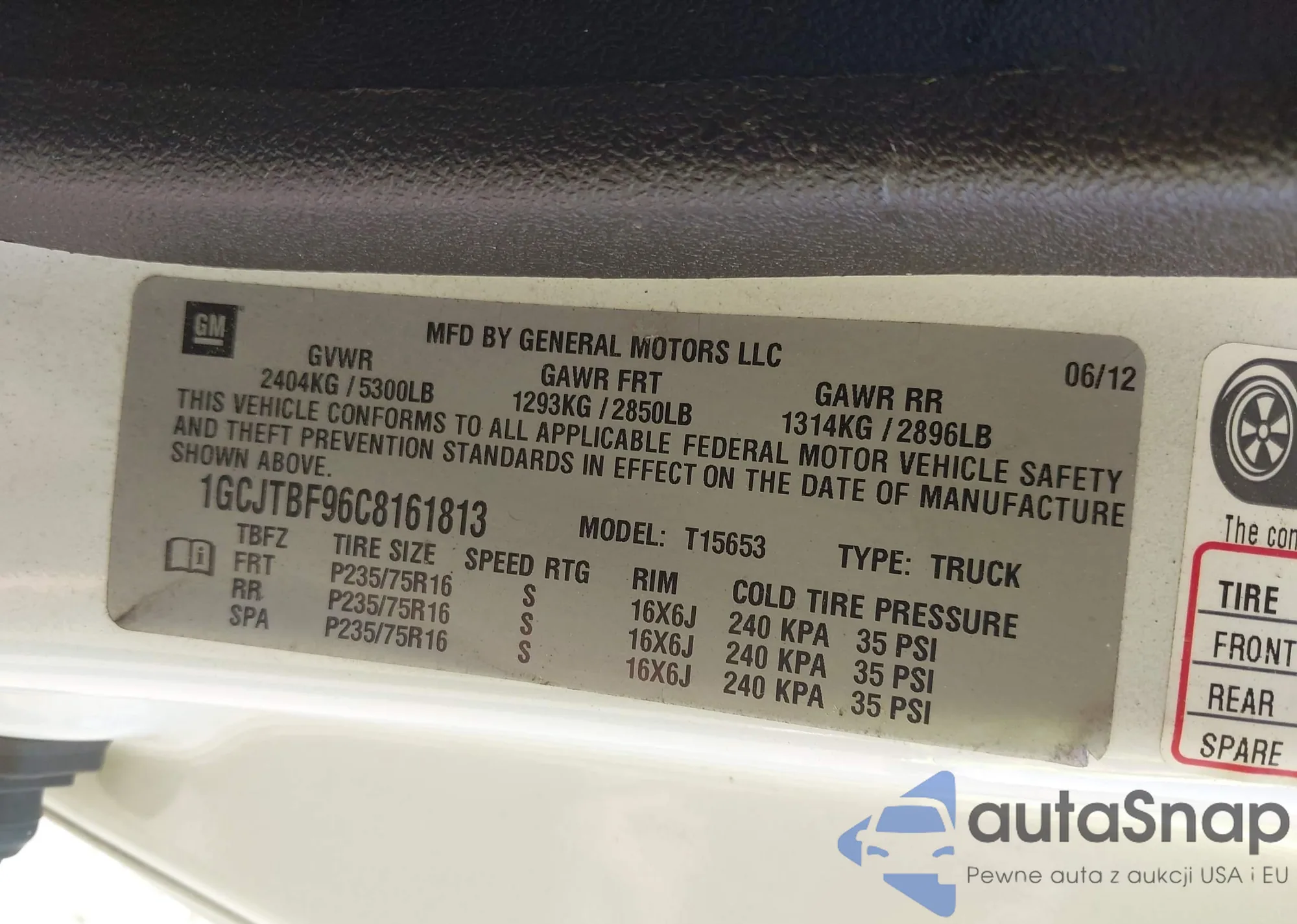 • VIN 1GCJTBF96C8161813