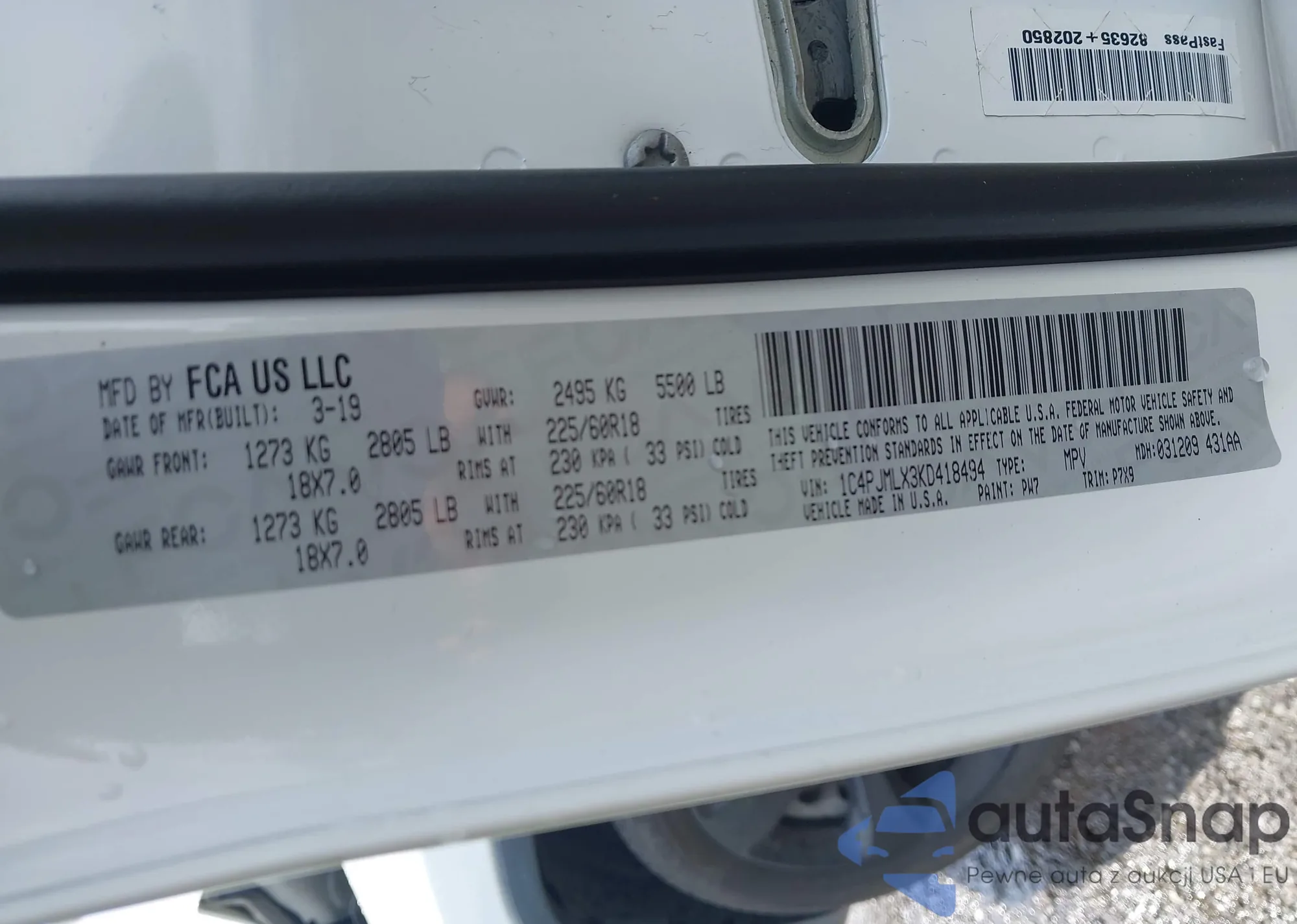 • VIN 1C4PJMDN0KD474745