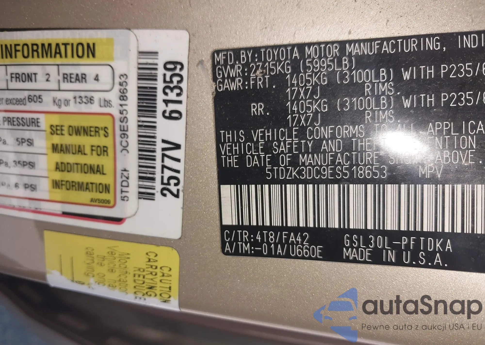 LOT: 42767591 VIN: 5TDZK3DC9ES518653