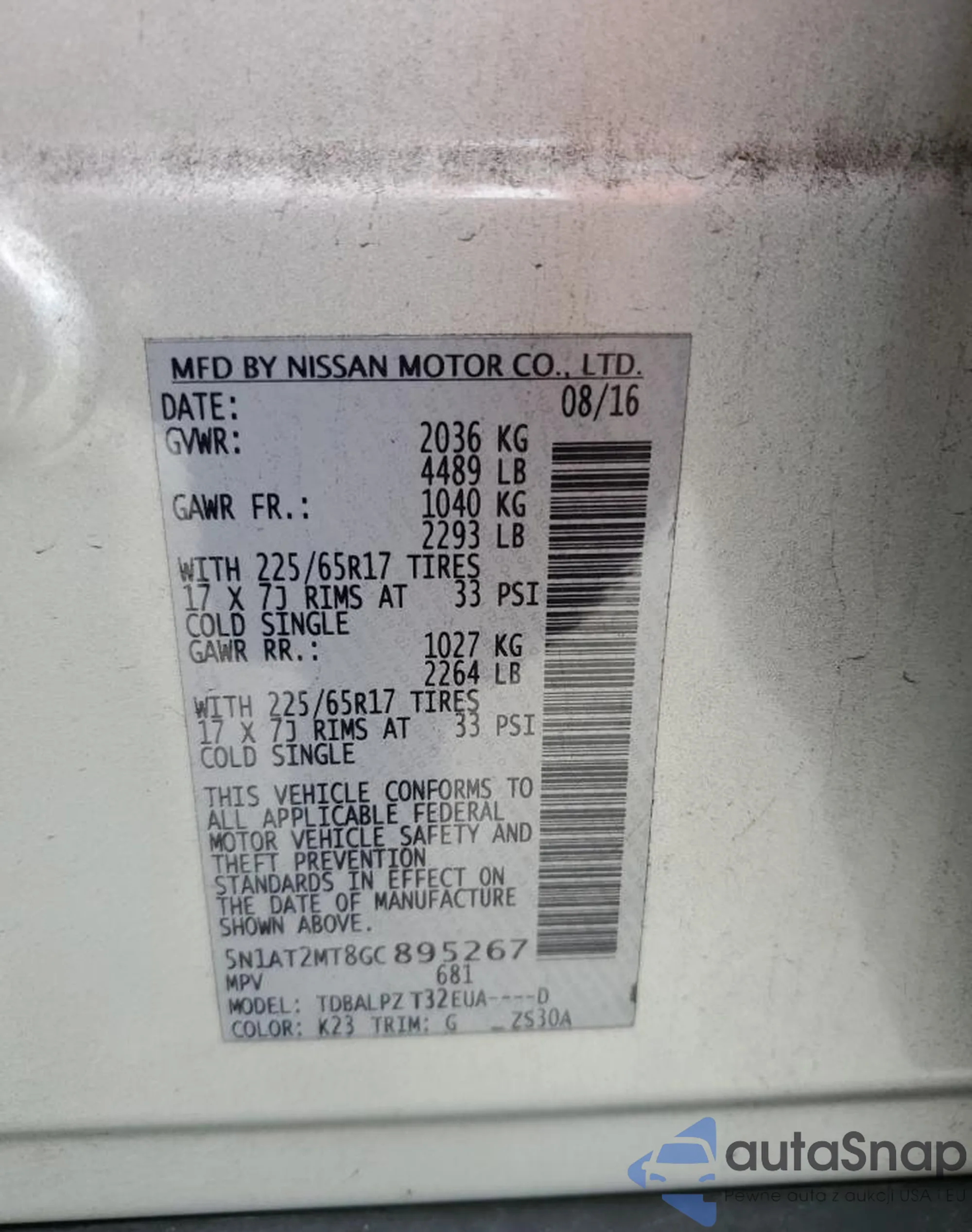• VIN 5N1AZ2CS3RC106937