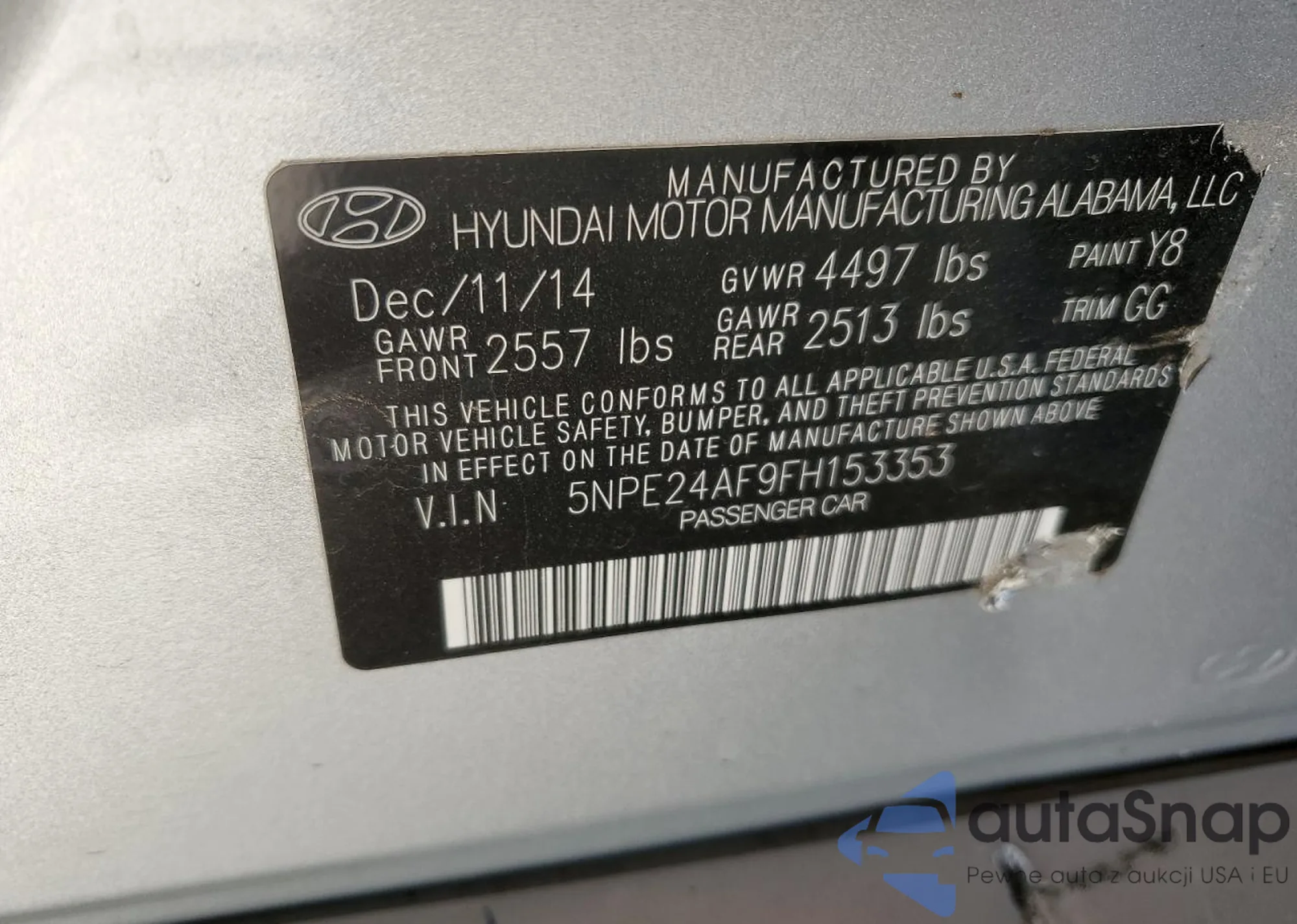 • VIN 5NPE24AF9FH153353