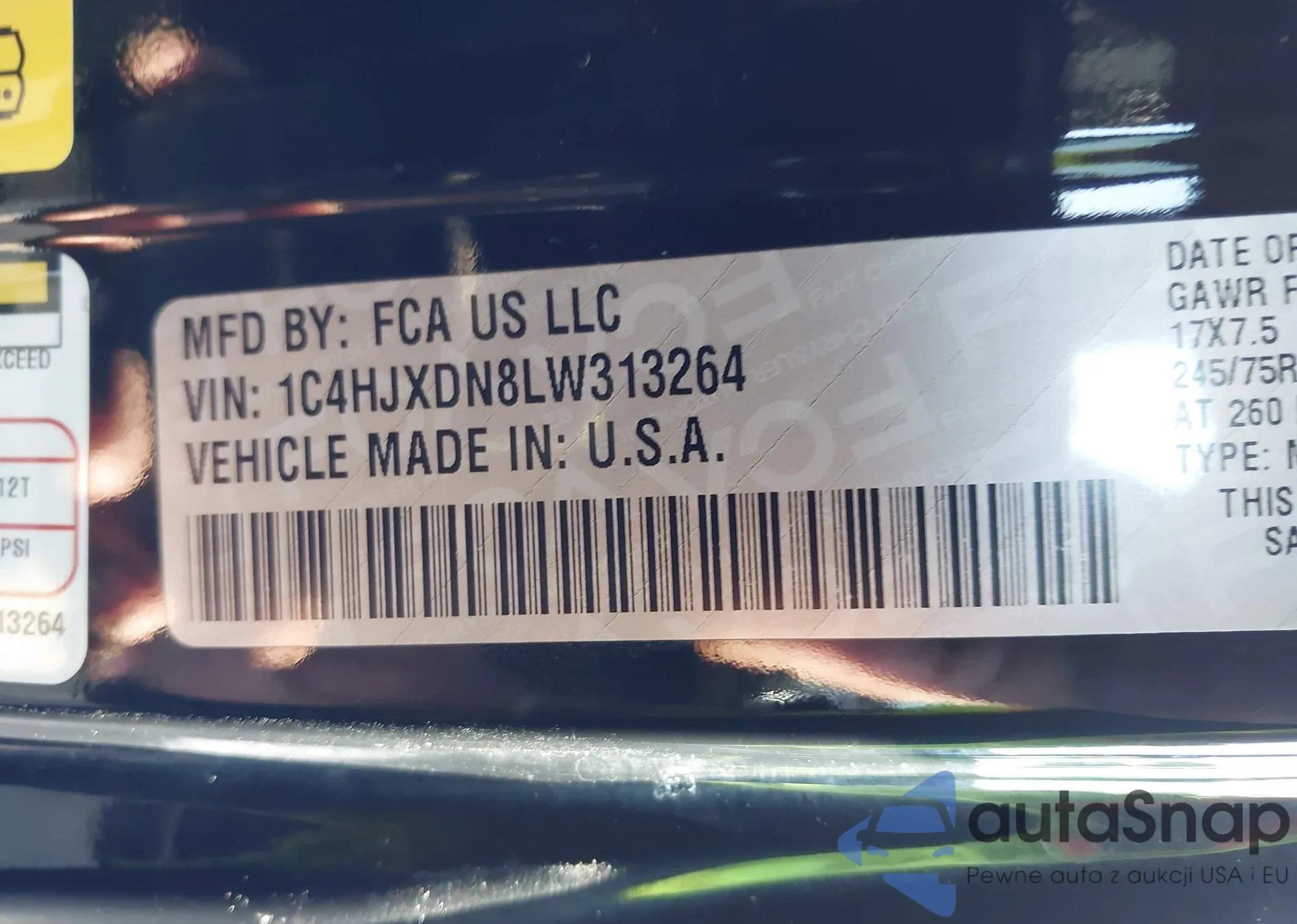 • VIN 1C4HJXDN8LW313264