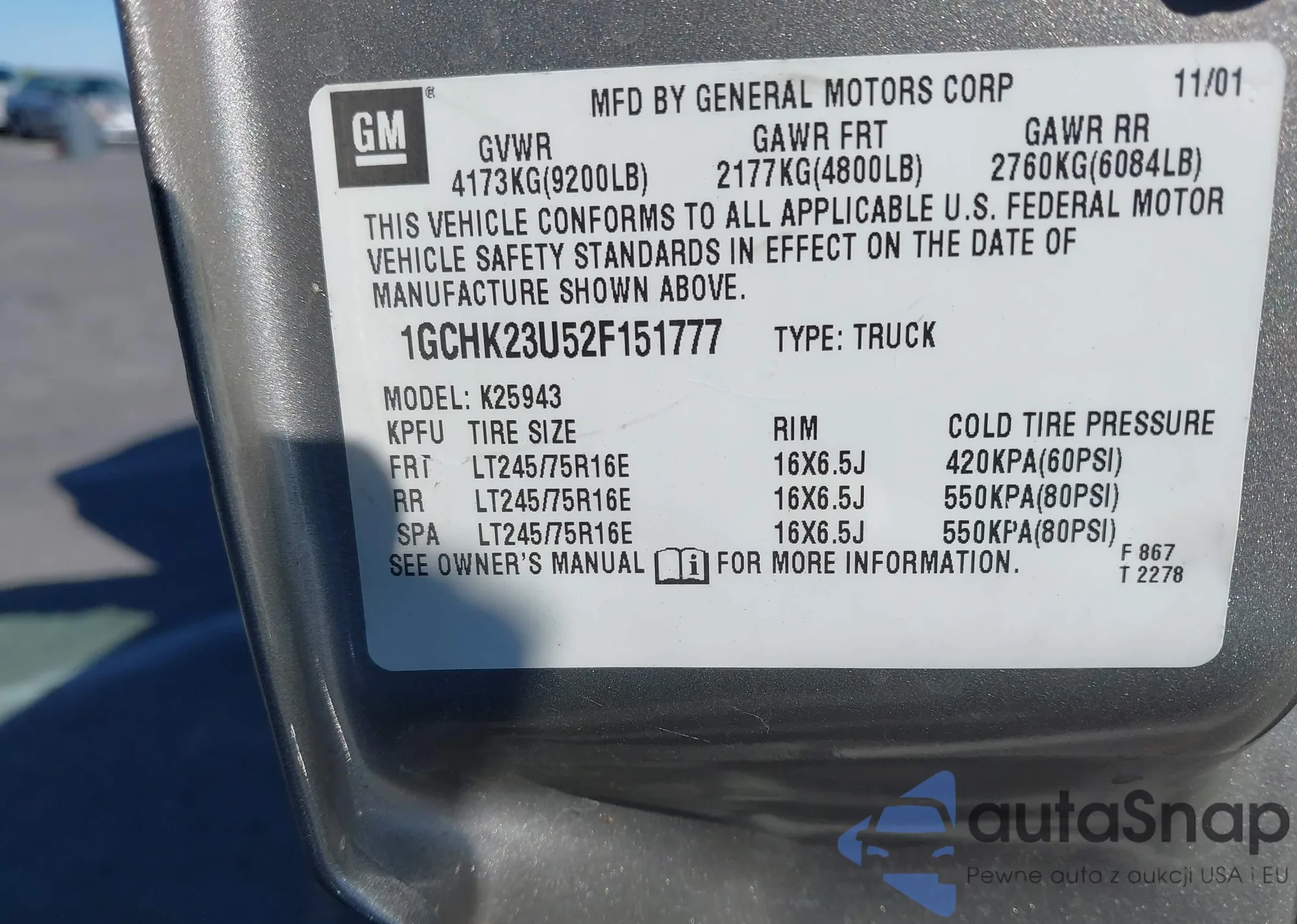LOT: 42677362 VIN: 1GCHK23U52F151777