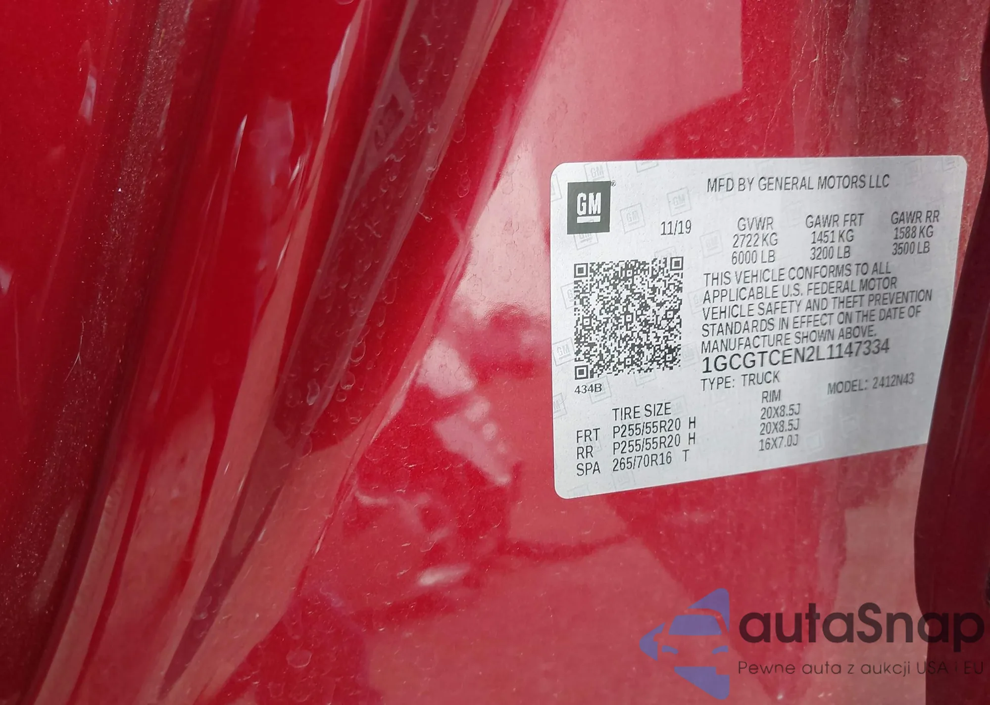 LOT: 42783149 VIN: 1GCGTCEN2L1147334