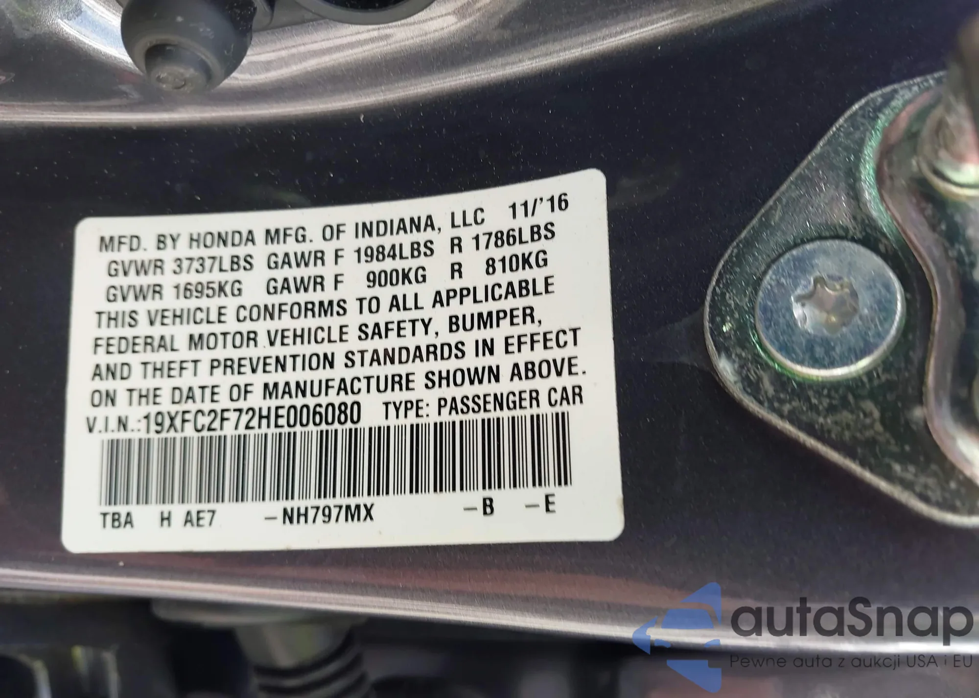 • VIN 19XFC2F72HE006080