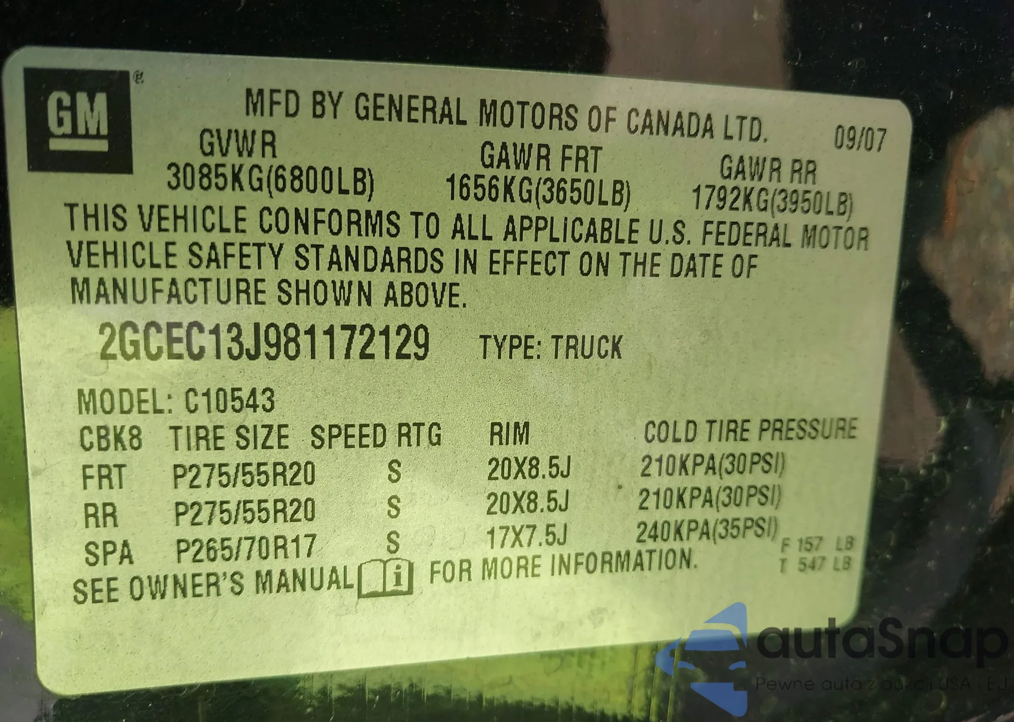 • VIN 2GCEC13J981172129