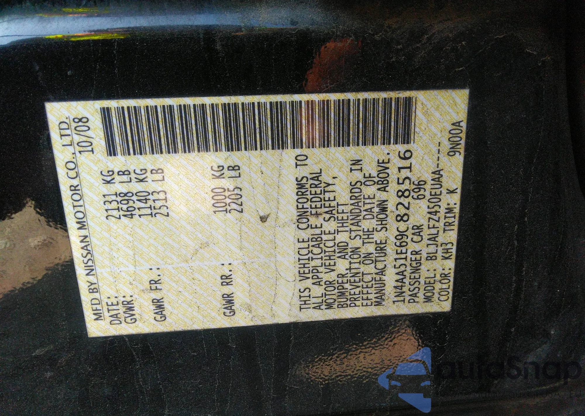 LOT: 41998551 VIN: 1N4AA51E69C828516