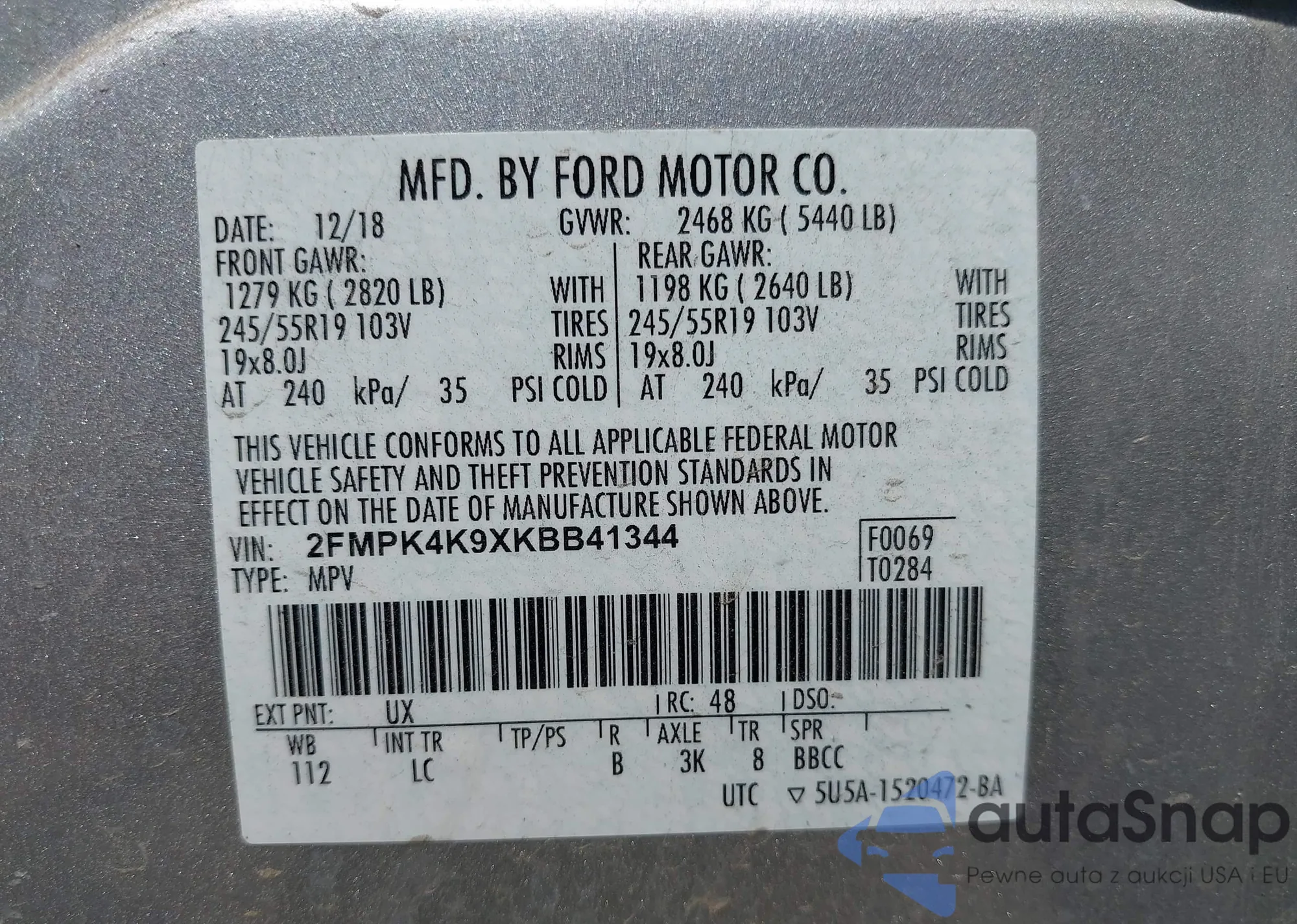 • VIN 2FMPK4K9XKBB41344