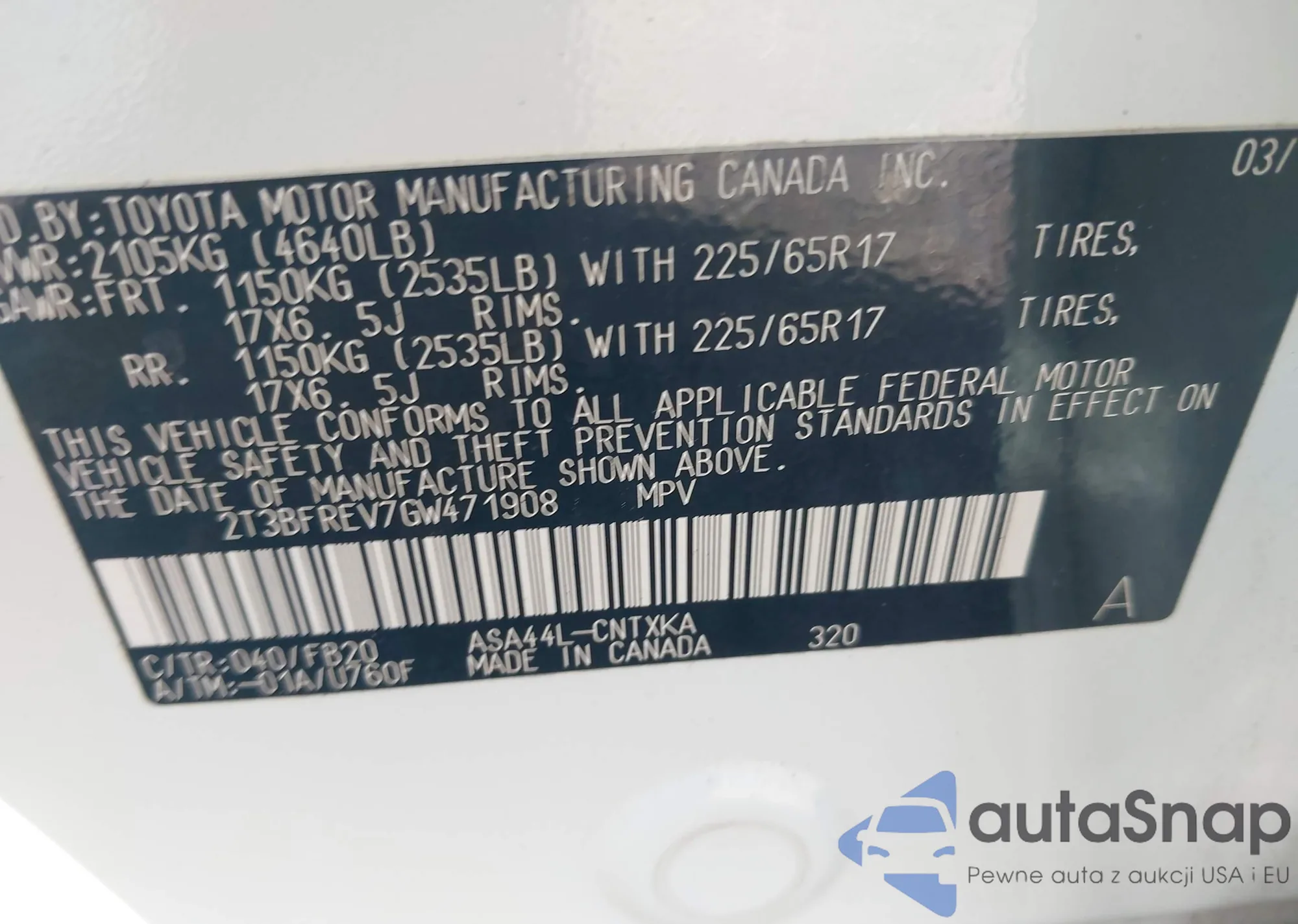• VIN 2T3BFREV7GW471908