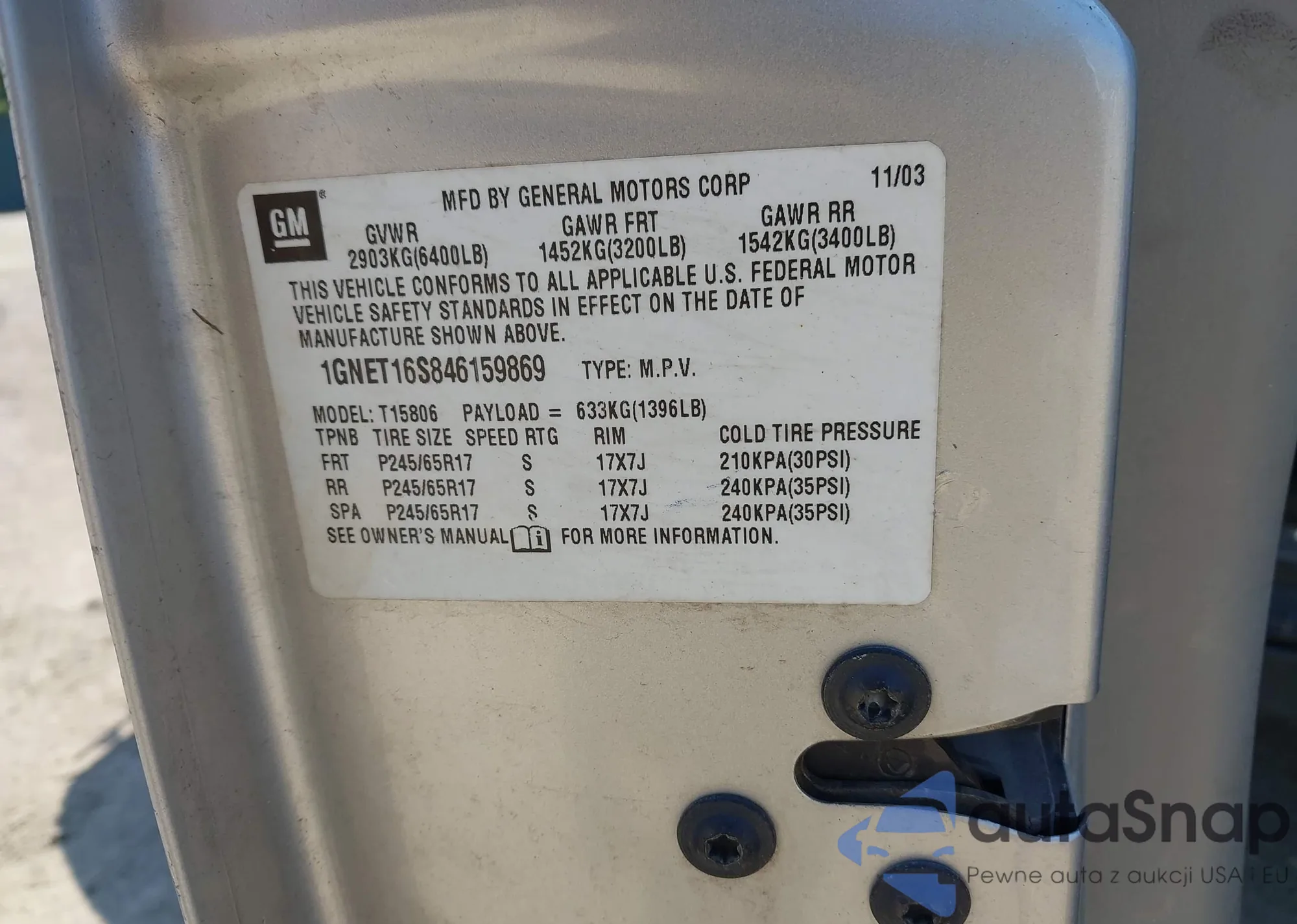 LOT: 42664887 VIN: 1GNET16S846159869