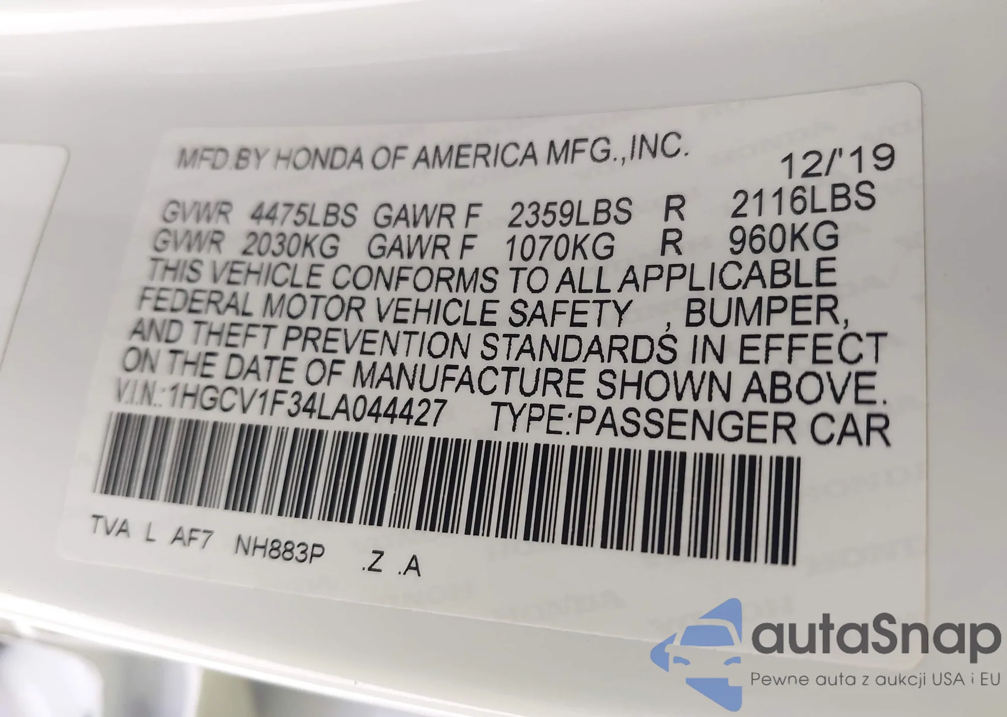 • VIN 1HGCV1F34LA044427