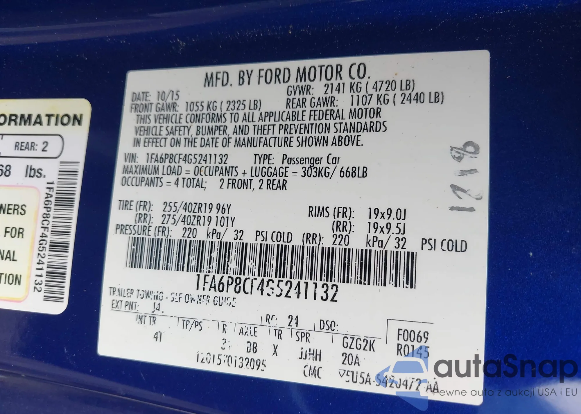 • VIN 1FA6P8CF4G5241132