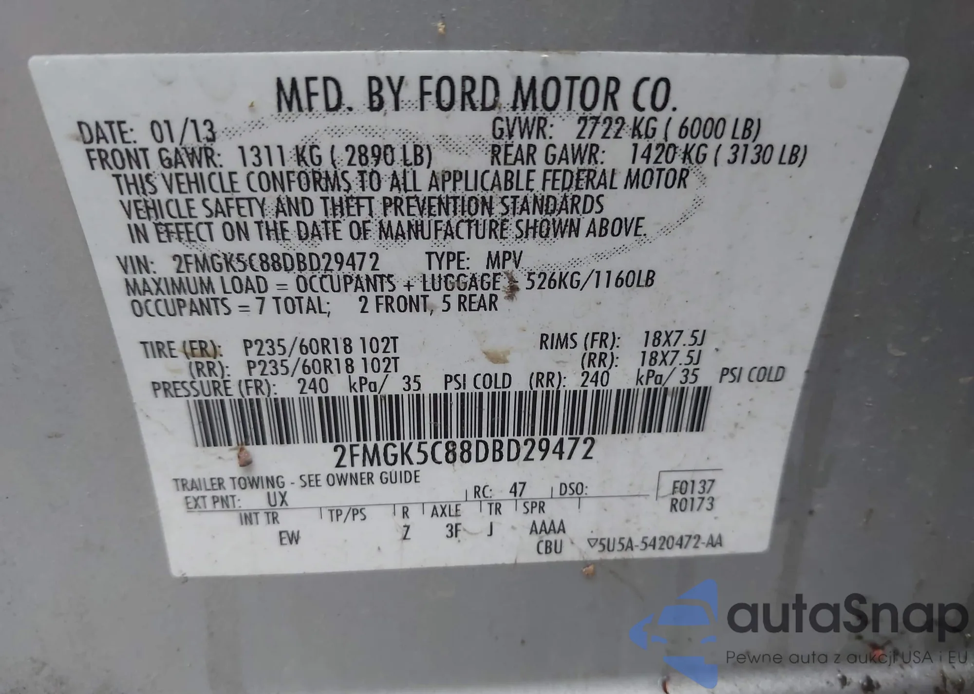 LOT: 42437915 VIN: 2FMGK5C88DBD29472
