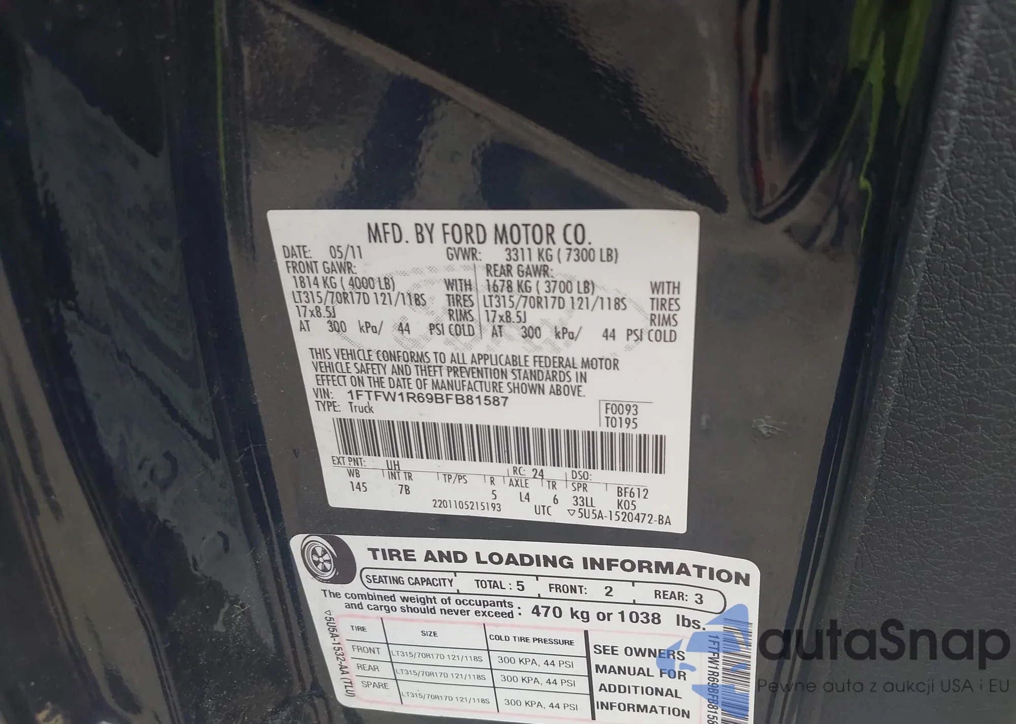 • VIN 1FTFW1R69BFB81587