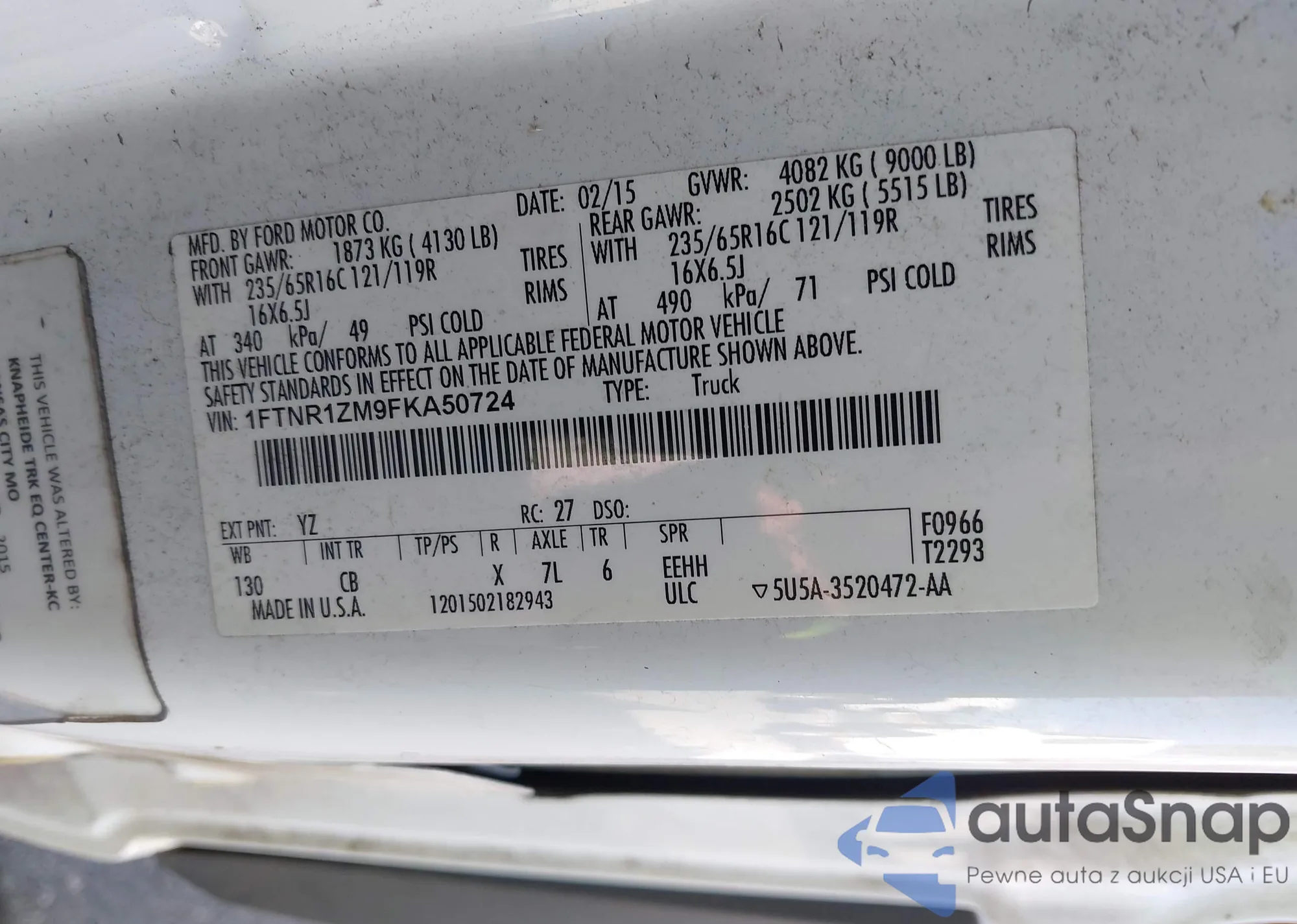 • VIN 1FTNR1ZM9FKA50724