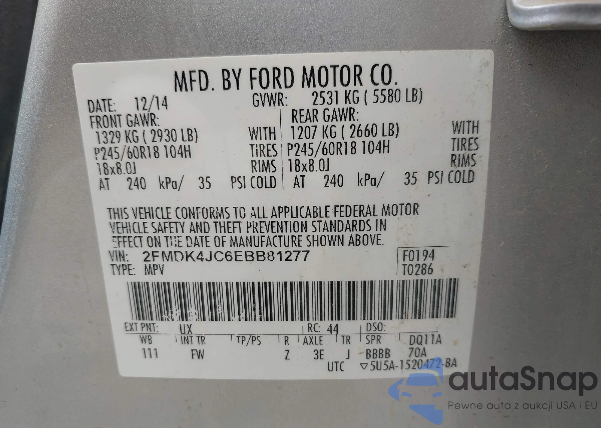 LOT: 42679632 VIN: 2FMDK4JC6EBB81277