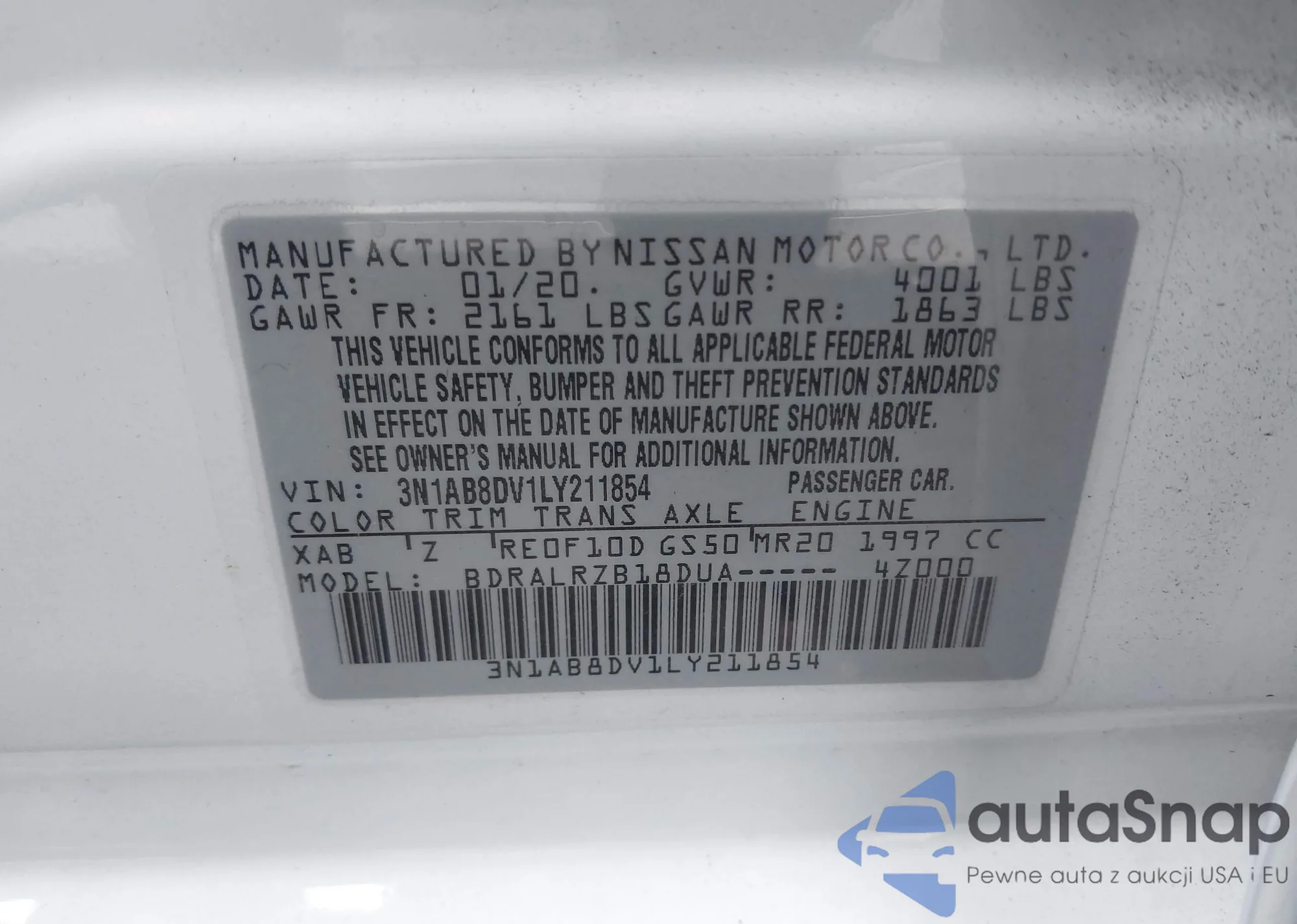 • VIN 3N1AB8DV1LY211854