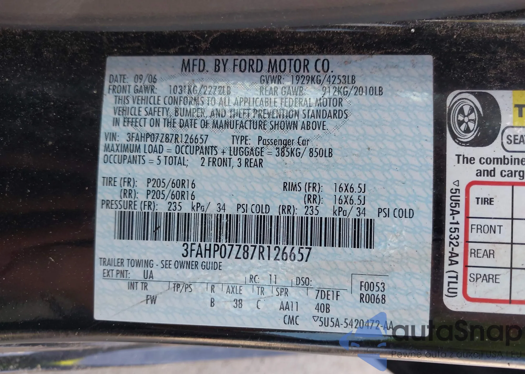 LOT: 42457278 VIN: 1FMZU77K05UB73931