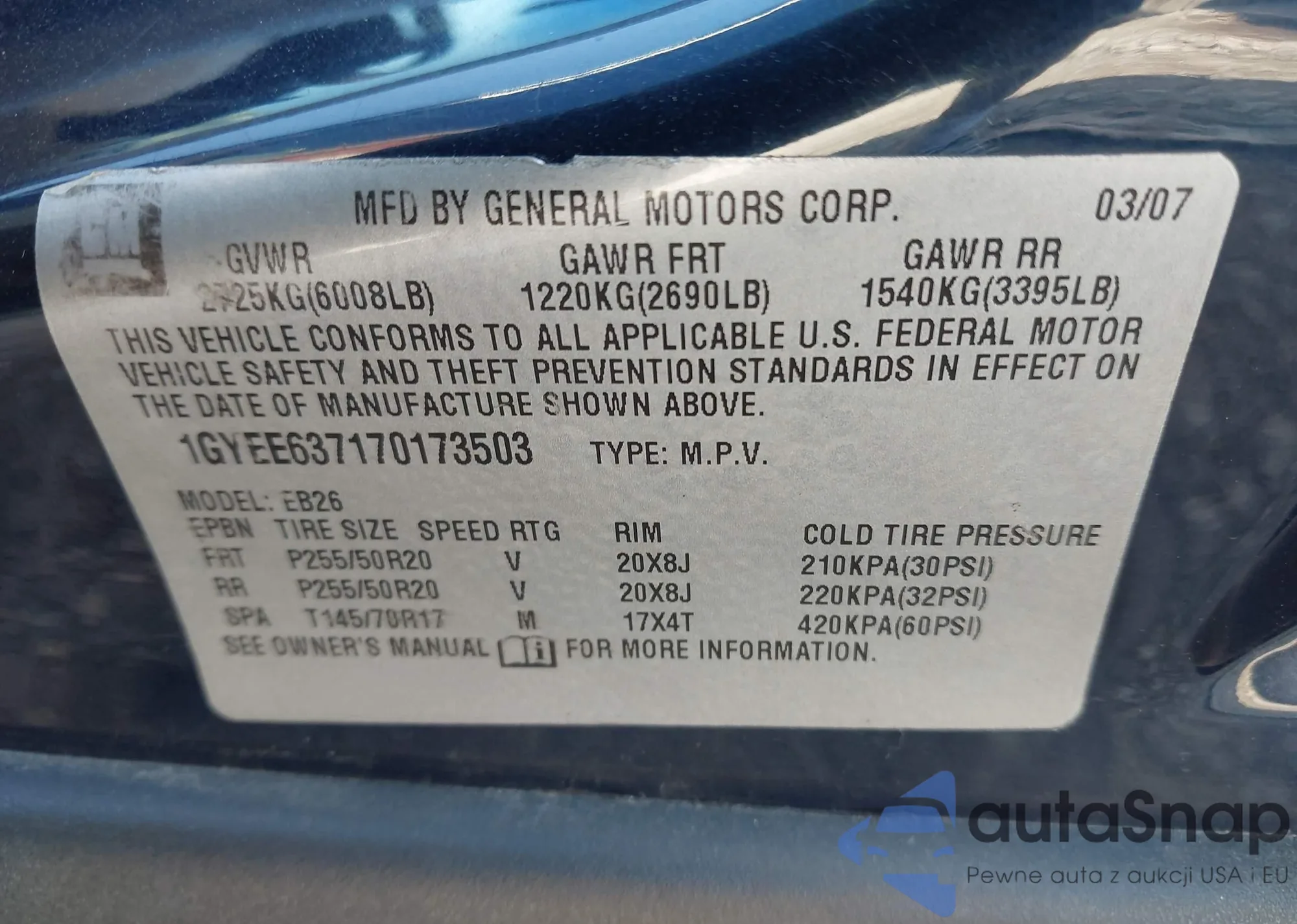 • VIN 1GYEE637170173503