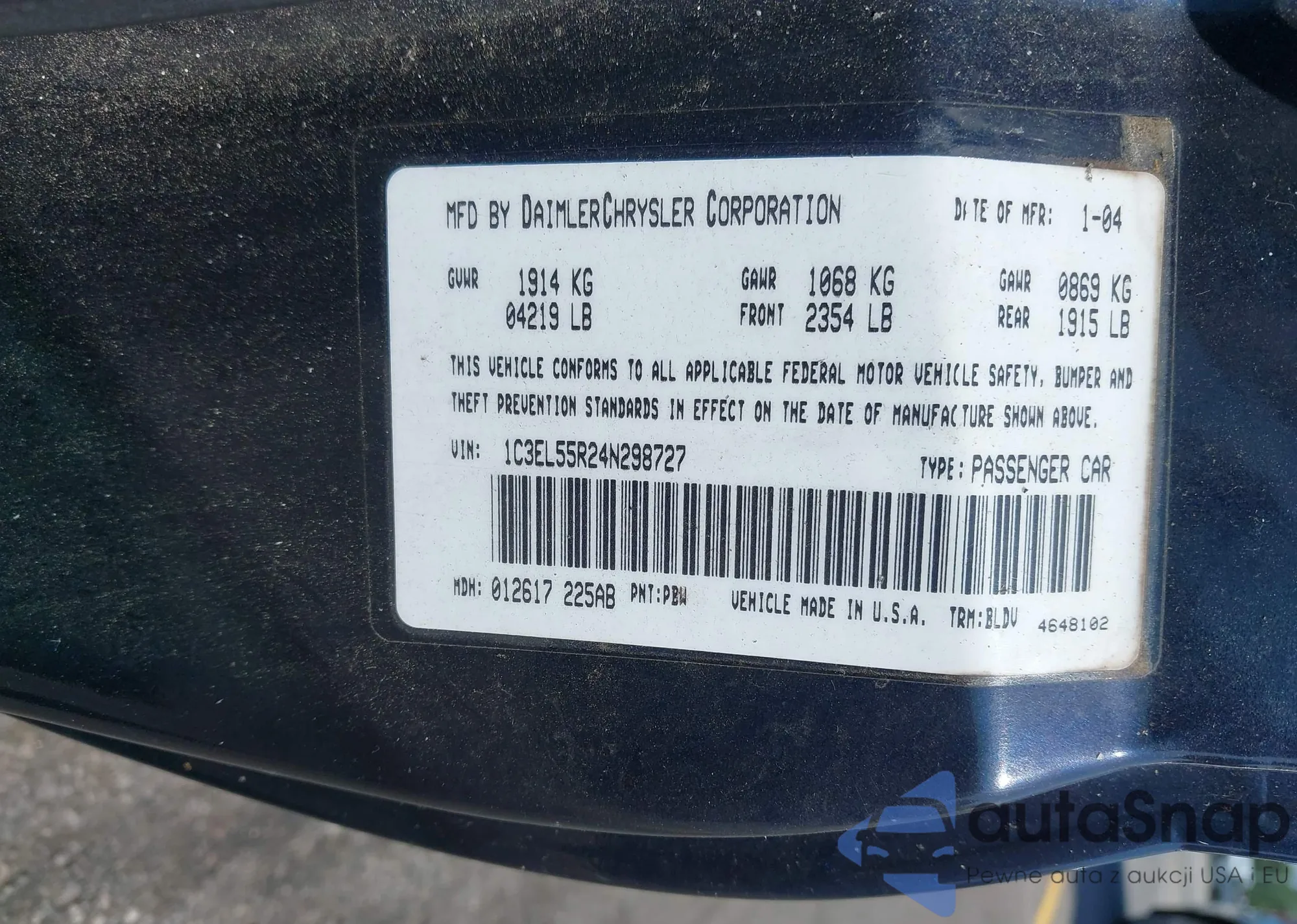 • VIN 1C3CDFBB1FD221809
