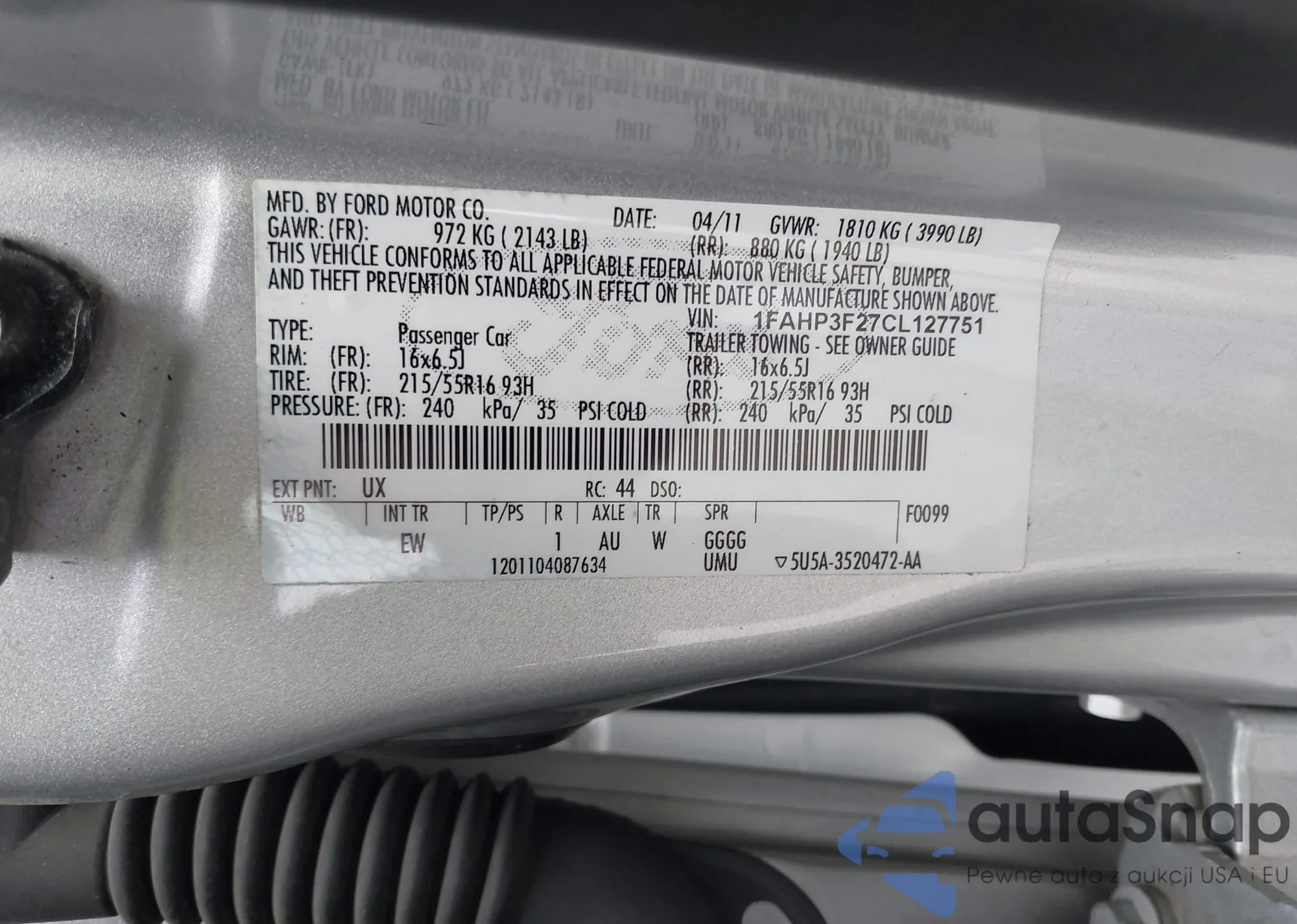 LOT: 42271004 VIN: 1FAHP3F27CL127751
