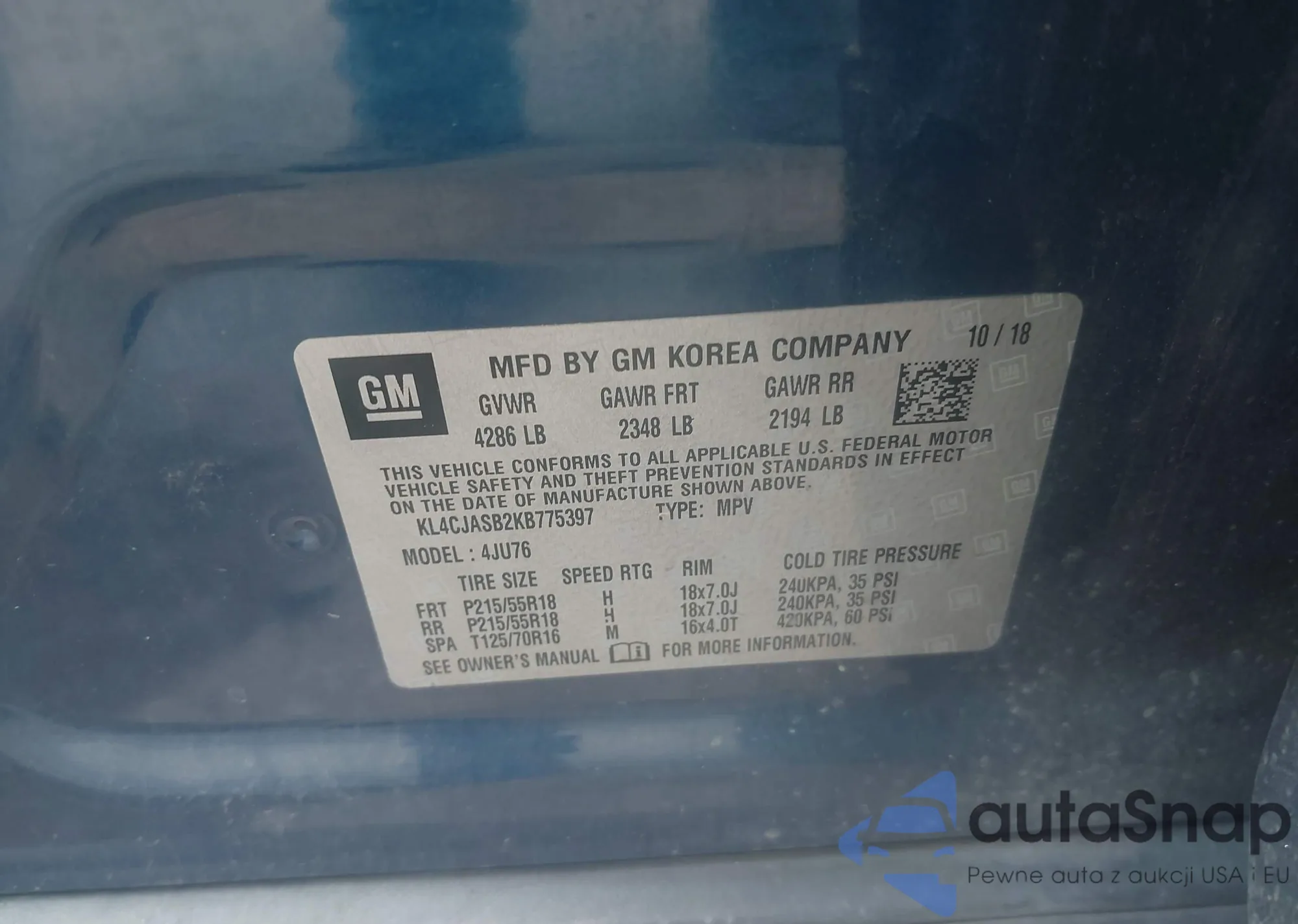 • VIN KL4CJASB2KB775397