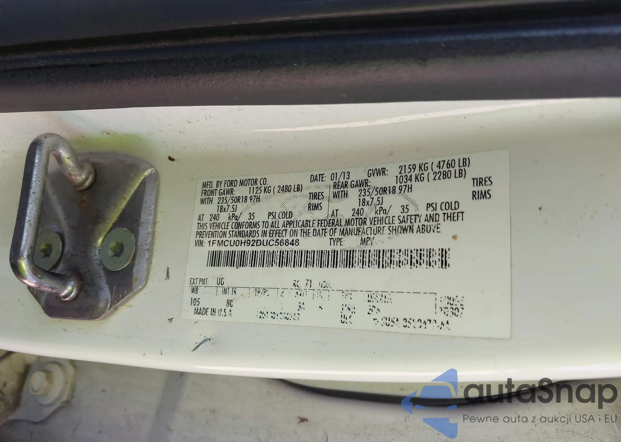 LOT: 42743278 VIN: 1FMCU0H92DUC56848