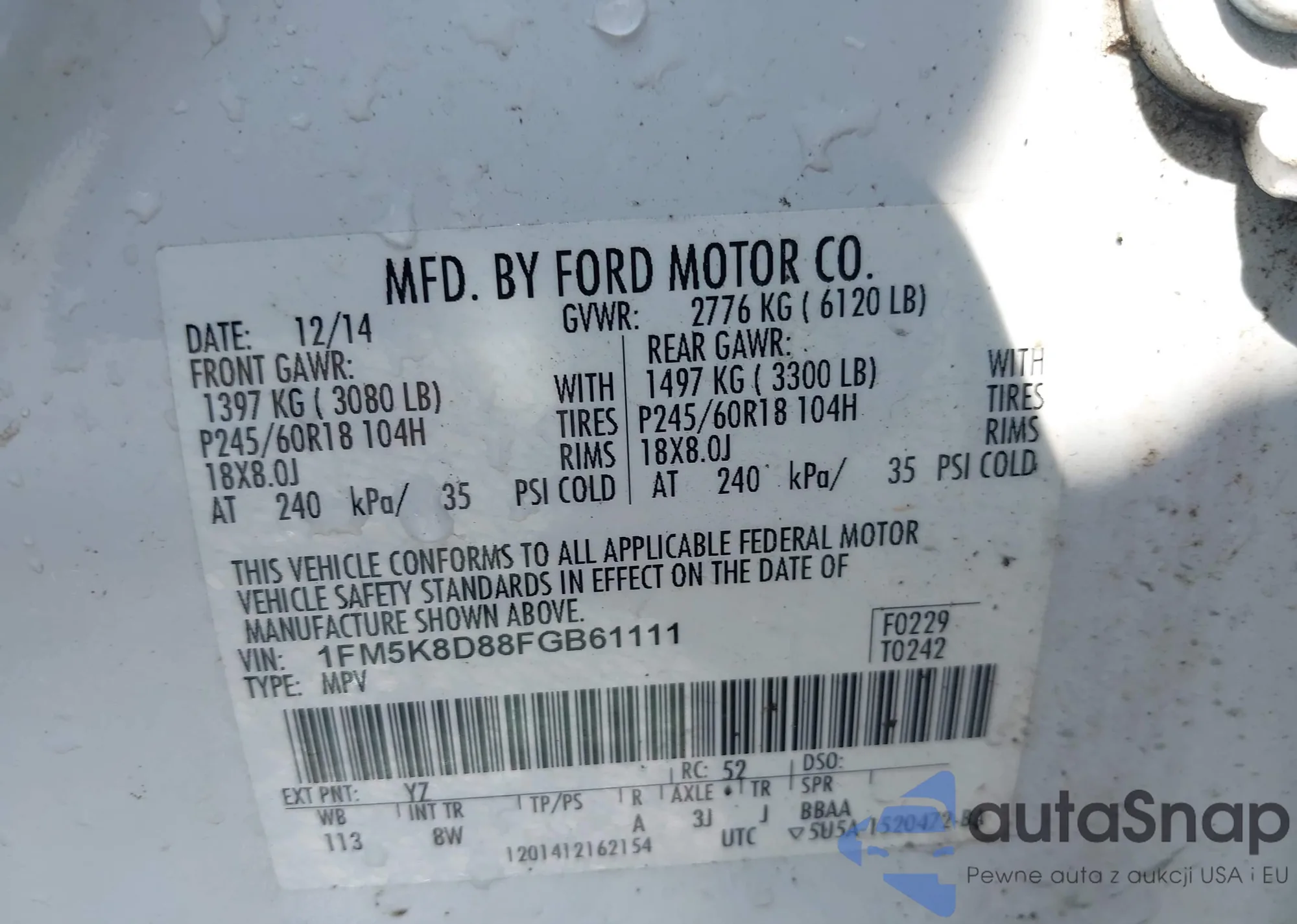 • VIN 1FM5K8D88FGB61111