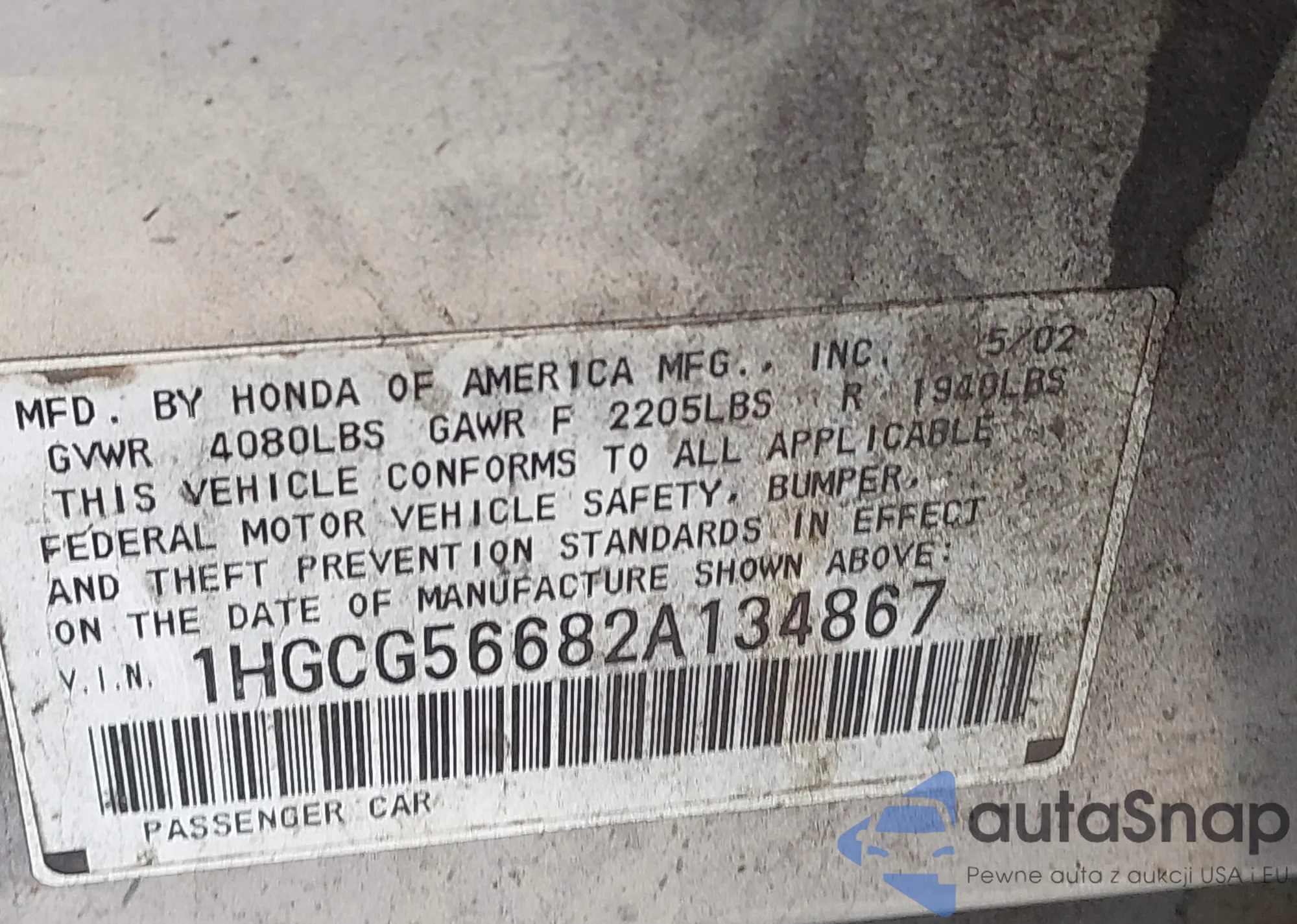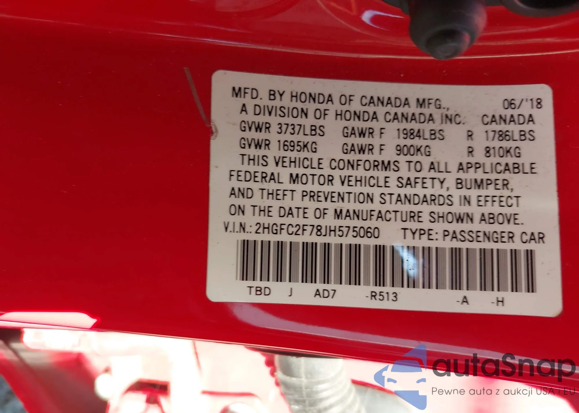 • VIN 2HGFC2F78JH575060
