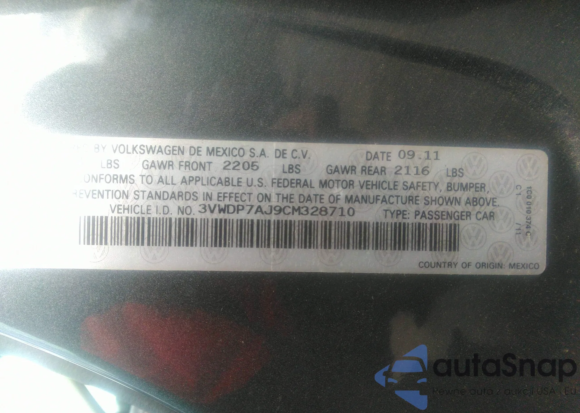 • VIN WAUDF78E98A159062