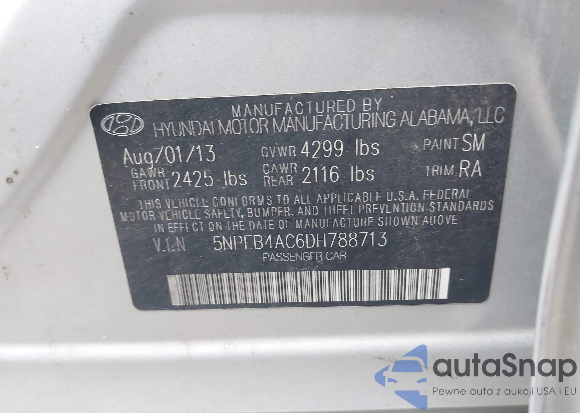 • VIN 5NPEB4AC6DH788713