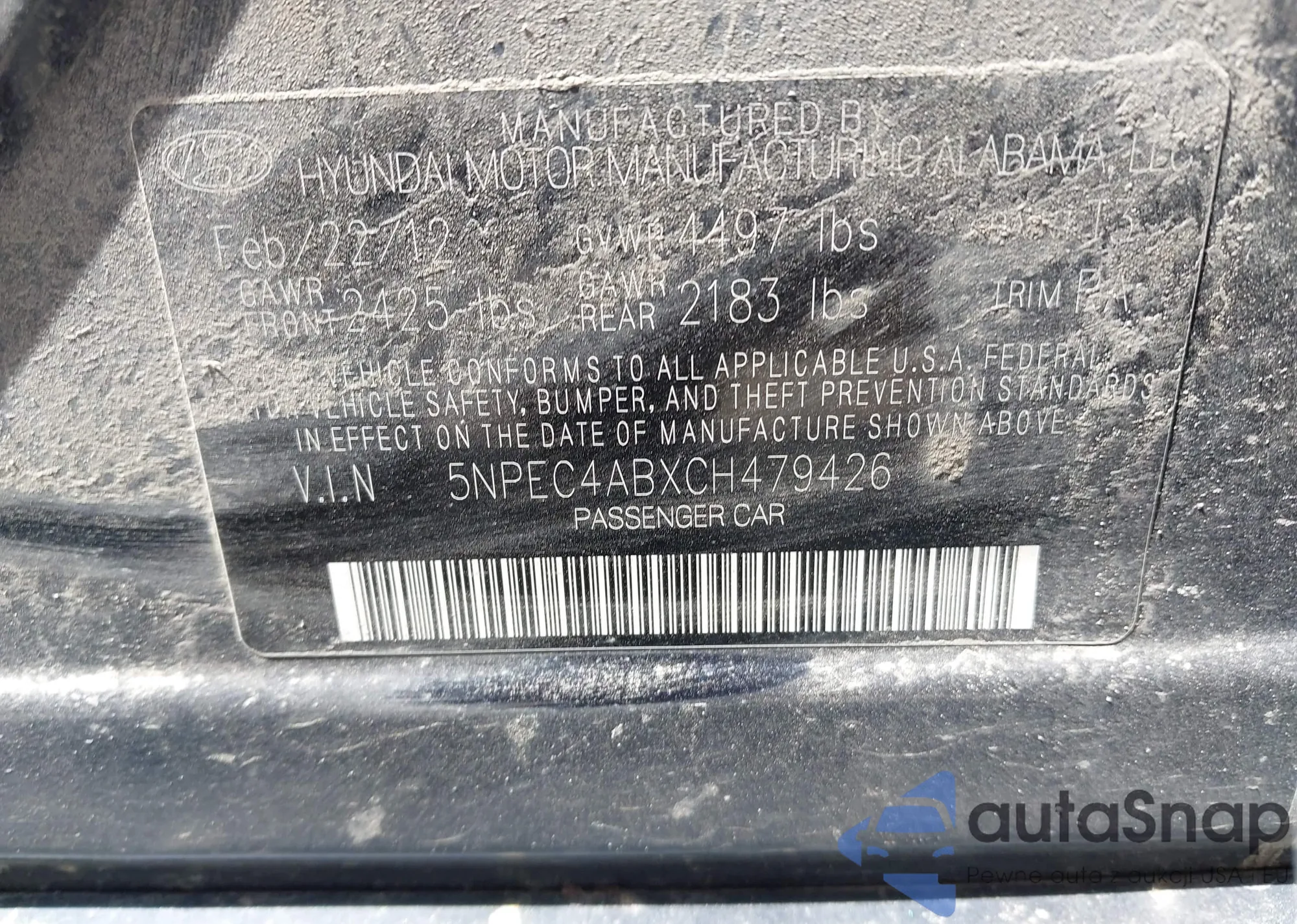 • VIN 5NPEC4ABXCH479426