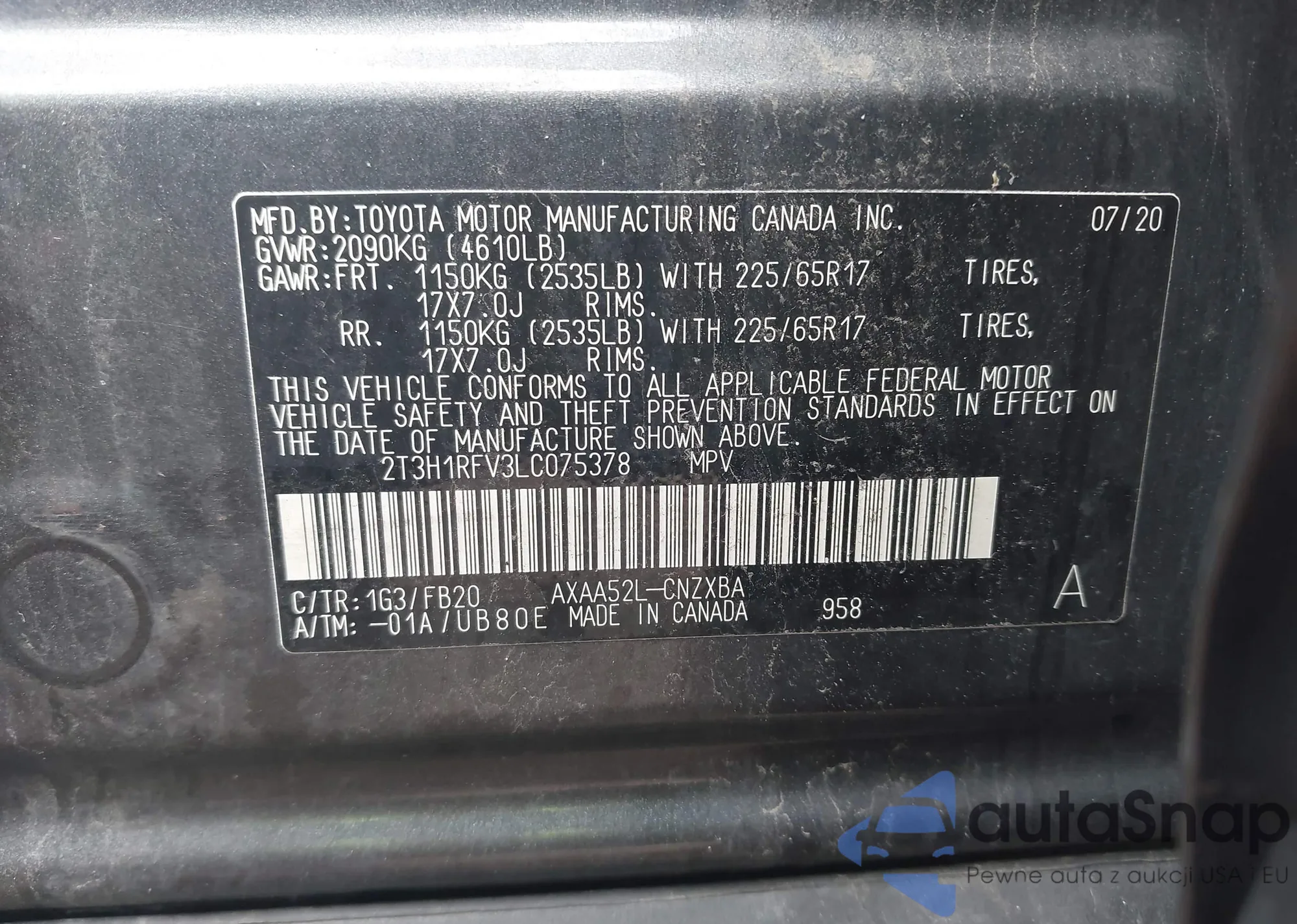 LOT: 42413204 VIN: 2T3H1RFV3LC075378