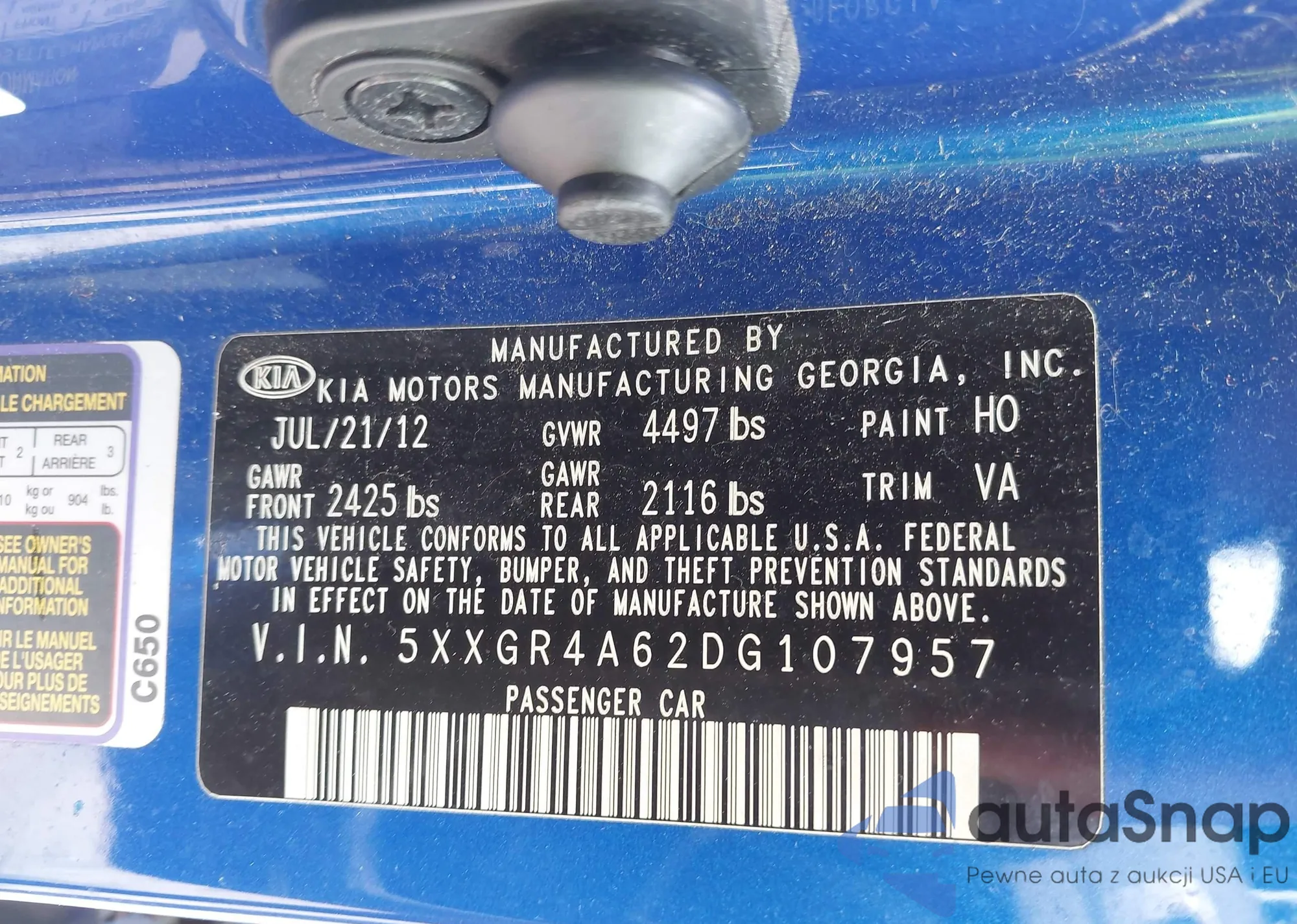 LOT: 42479965 VIN: 5XXGR4A62DG107957