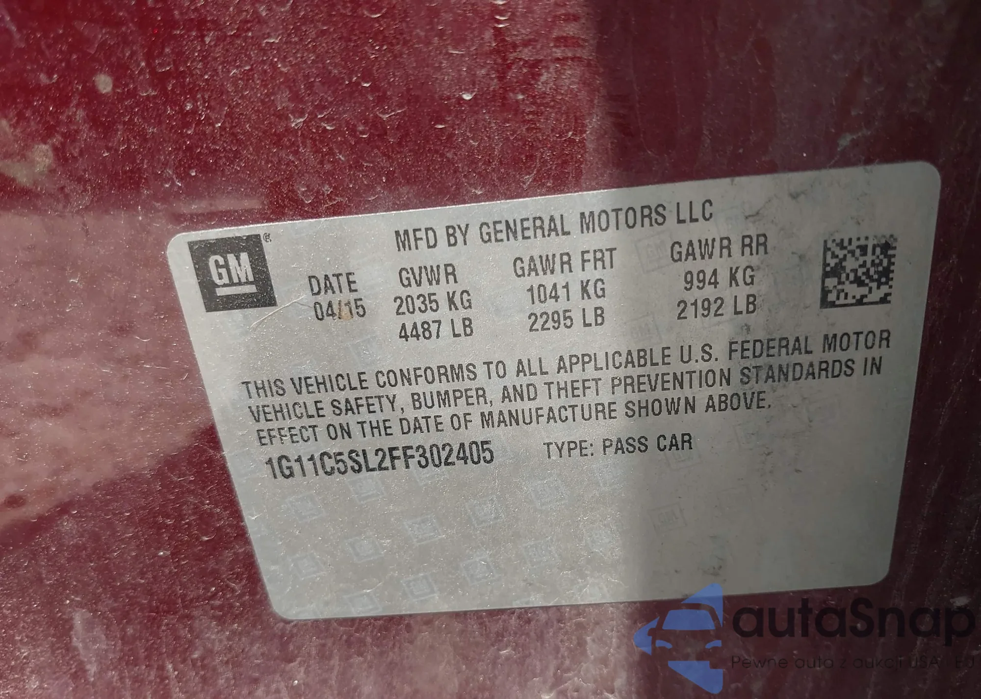• VIN 5XXGR4A62DG107957